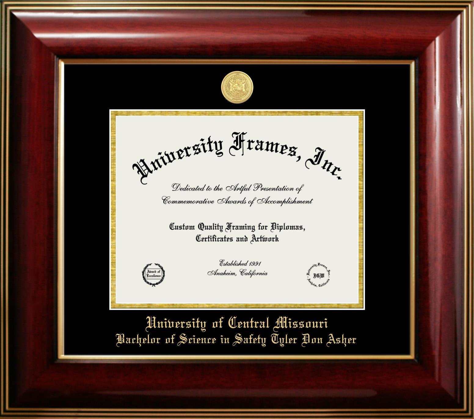 Design Your Own (University of Central Missouri Bachelor of Science in Safety Tyler Don Asher) Custom Diploma Frames