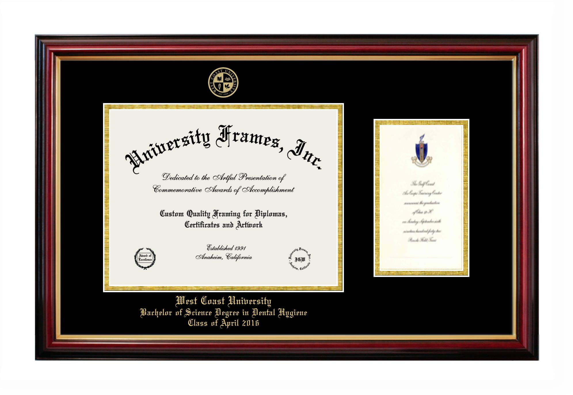 Design Your Own (West Coast University Bachelor of Science Degree in Dental Hygiene Class of April 2016) Custom Diploma Frames