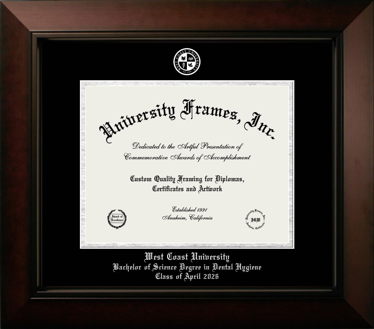 Design Your Own (West Coast University Bachelor of Science Degree in Dental Hygiene Class of April 2026) Custom Diploma Frames