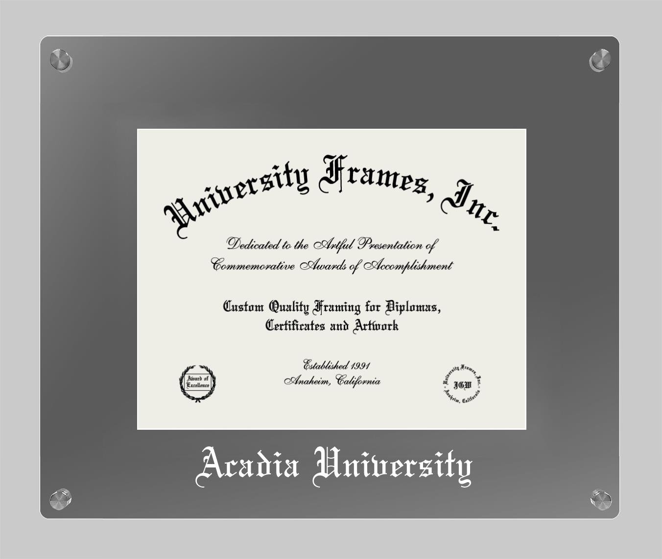 Are you a Acadia University graduate looking for an officially licensed diploma frame to showcase your achievement? Or, are you looking for a unique graduation gift for a recent Acadia University graduate or alum? You have come to the right place! Our officially licensed custom diploma frames have the original seal of Acadia University. Each of our degree frames is handcrafted to offer the highest quality and precision. You can easily customize your graduation frames according to your style and preference. Start customizing your college diploma frame now!