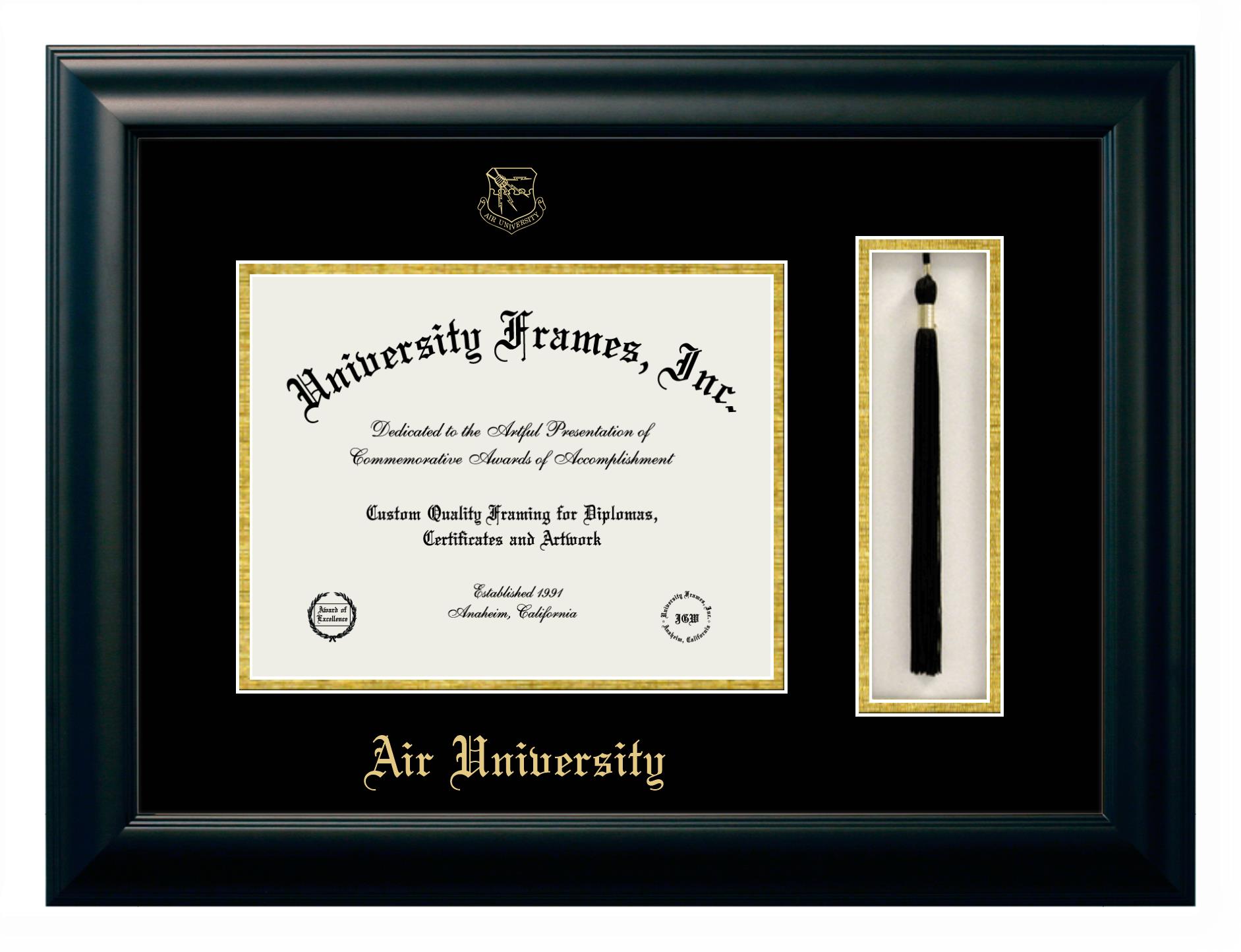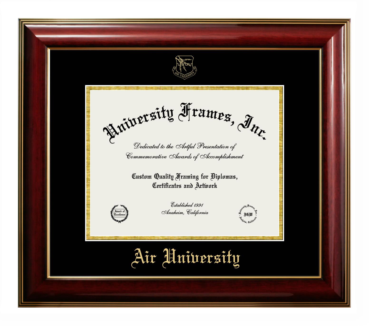 Are you a Air University graduate looking for an officially licensed diploma frame to showcase your achievement? Or, are you looking for a unique graduation gift for a recent Air University graduate or alum? You have come to the right place! Our officially licensed custom diploma frames have the original seal of Air University. Each of our degree frames is handcrafted to offer the highest quality and precision. You can easily customize your graduation frames according to your style and preference. Start customizing your college diploma frame now!