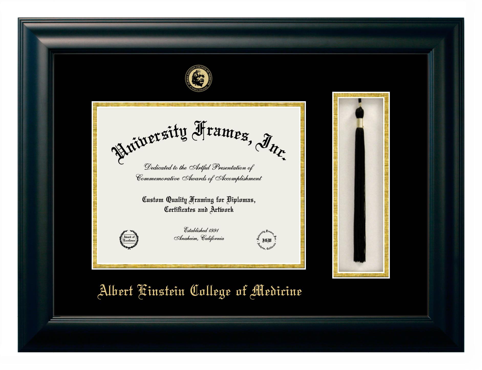 Are you a Albert Einstein College of Medicine graduate looking for an officially licensed diploma frame to showcase your achievement? Or, are you looking for a unique graduation gift for a recent Albert Einstein College of Medicine graduate or alum? You have come to the right place! Our officially licensed custom diploma frames have the original seal of Albert Einstein College of Medicine . Each of our degree frames is handcrafted to offer the highest quality and precision. You can easily customize your graduation frames according to your style and preference. Start customizing your college diploma frame now!