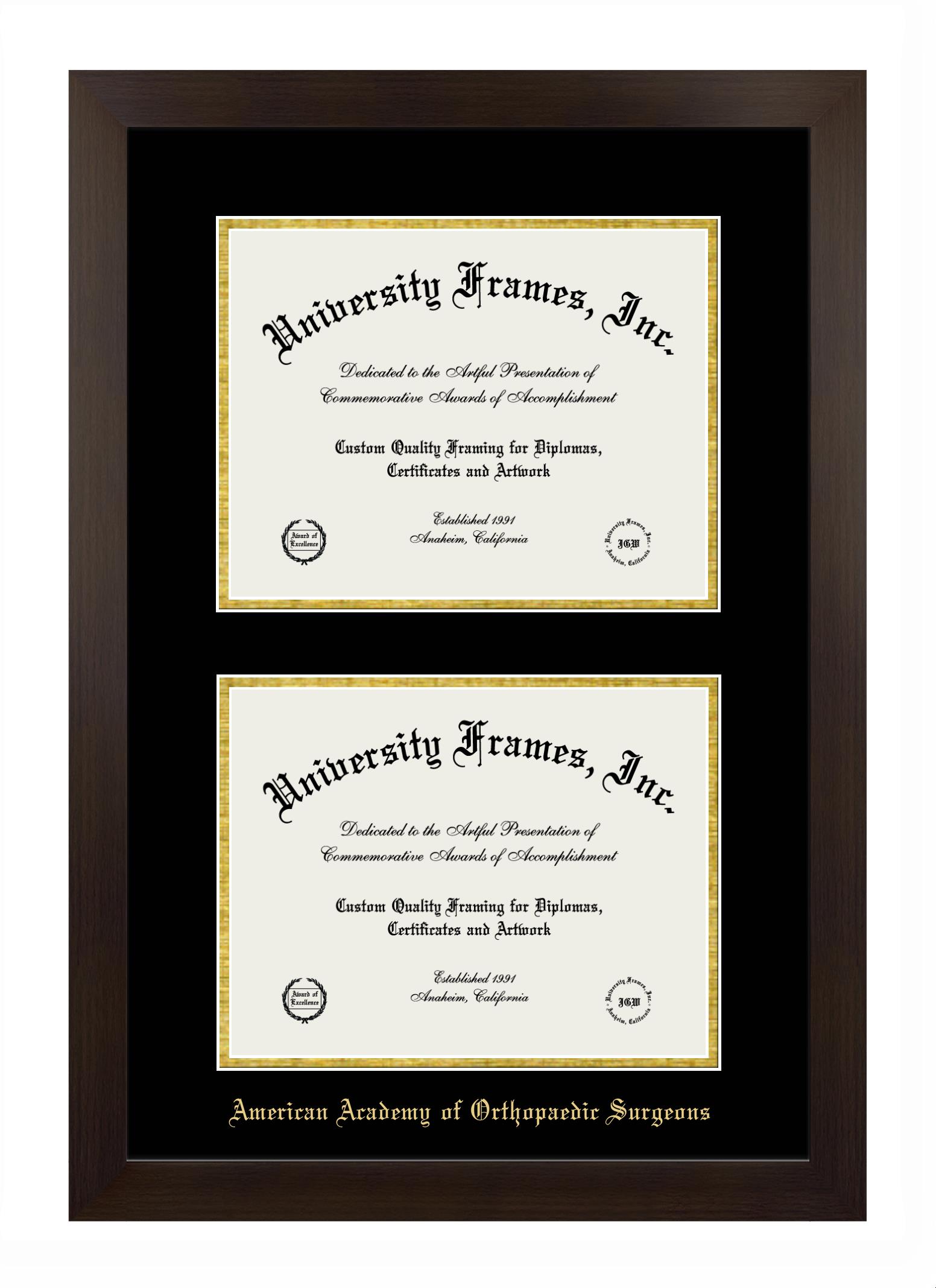 Are you a American Academy of Orthopaedic Surgeons graduate looking for an officially licensed diploma frame to showcase your achievement? Or, are you looking for a unique graduation gift for a recent American Academy of Orthopaedic Surgeons graduate or alum? You have come to the right place! Our officially licensed custom diploma frames have the original seal of American Academy of Orthopaedic Surgeons. Each of our degree frames is handcrafted to offer the highest quality and precision. You can easily customize your graduation frames according to your style and preference. Start customizing your college diploma frame now!