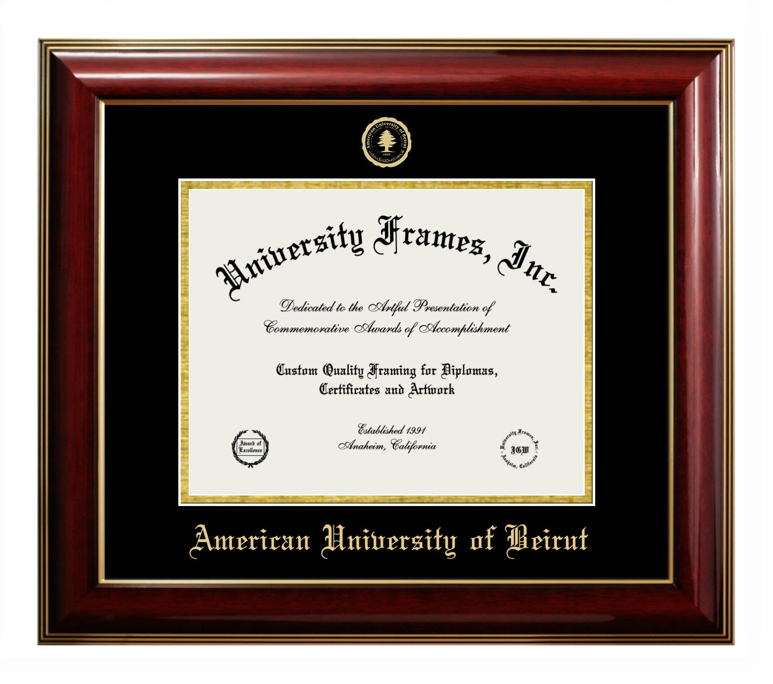 Are you a American University of Beirut graduate looking for an officially licensed diploma frame to showcase your achievement? Or, are you looking for a unique graduation gift for a recent American University of Beirut graduate or alum? You have come to the right place! Our officially licensed custom diploma frames have the original seal of American University of Beirut. Each of our degree frames is handcrafted to offer the highest quality and precision. You can easily customize your graduation frames according to your style and preference. Start customizing your college diploma frame now!