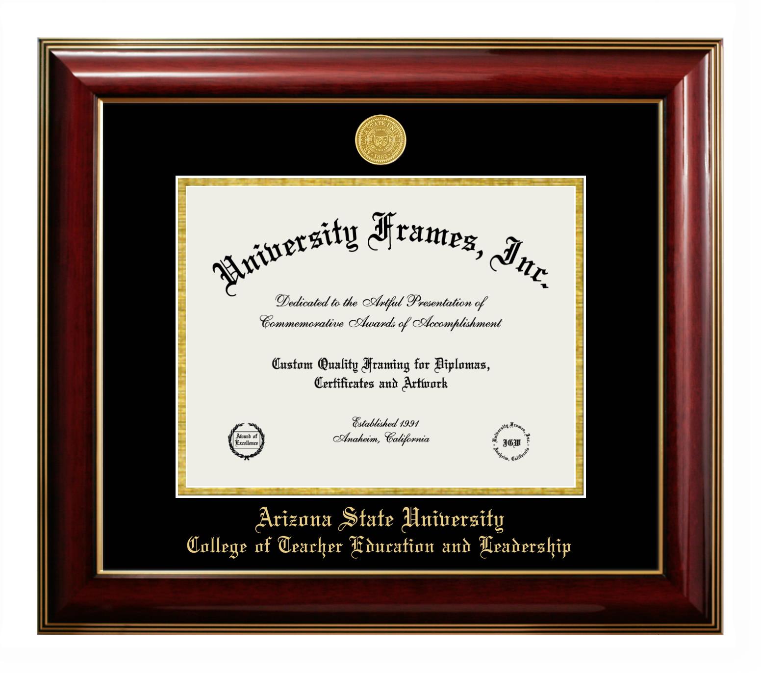 Are you a Arizona State University College of Teacher Education and Leadership graduate looking for an officially licensed diploma frame to showcase your achievement? Or, are you looking for a unique graduation gift for a recent Arizona State University College of Teacher Education and Leadership graduate or alum? You have come to the right place! Our officially licensed custom diploma frames have the original seal of Arizona State University College of Teacher Education and Leadership. Each of our degree frames is handcrafted to offer the highest quality and precision. You can easily customize your graduation frames according to your style and preference. Start customizing your college diploma frame now!