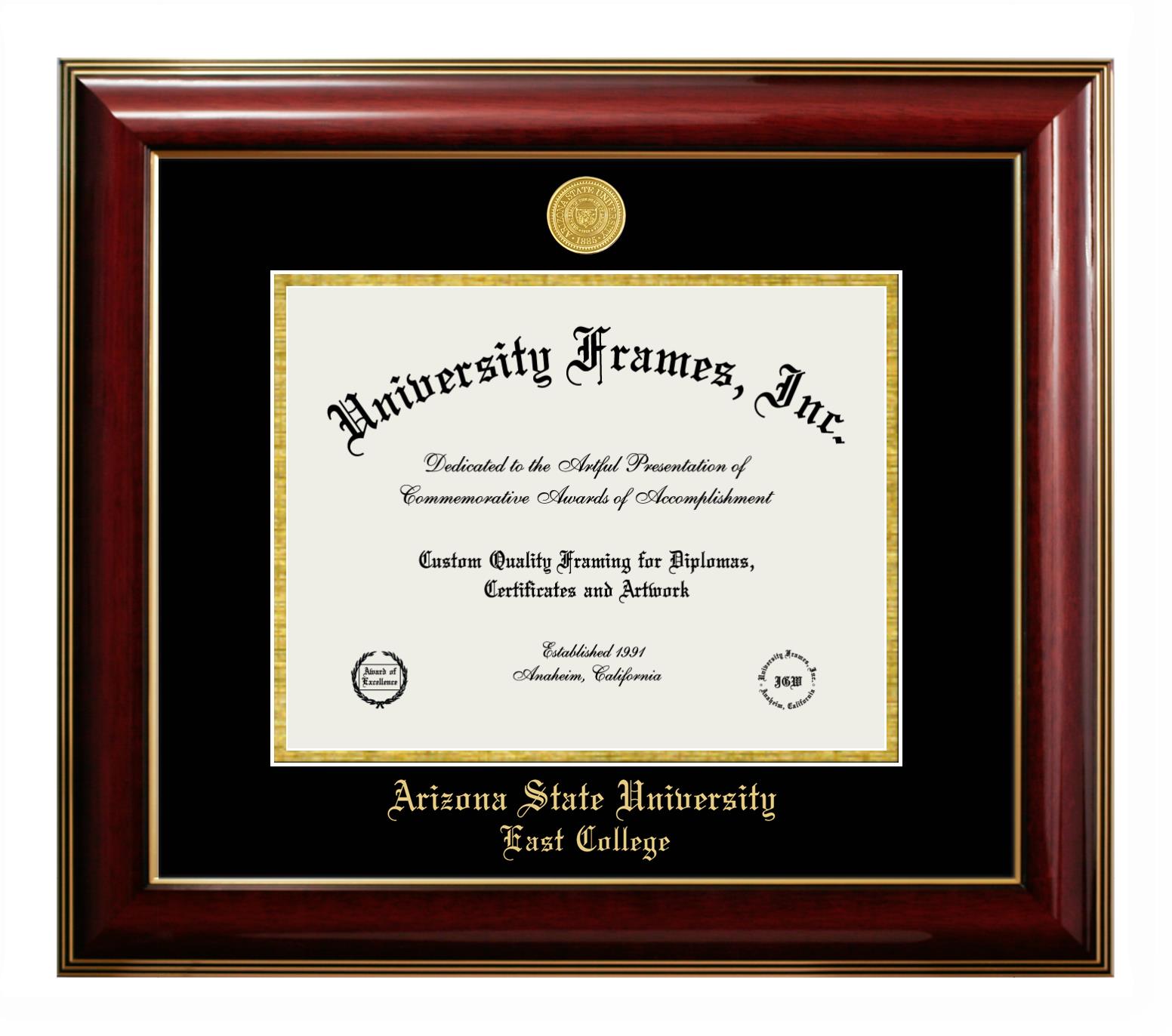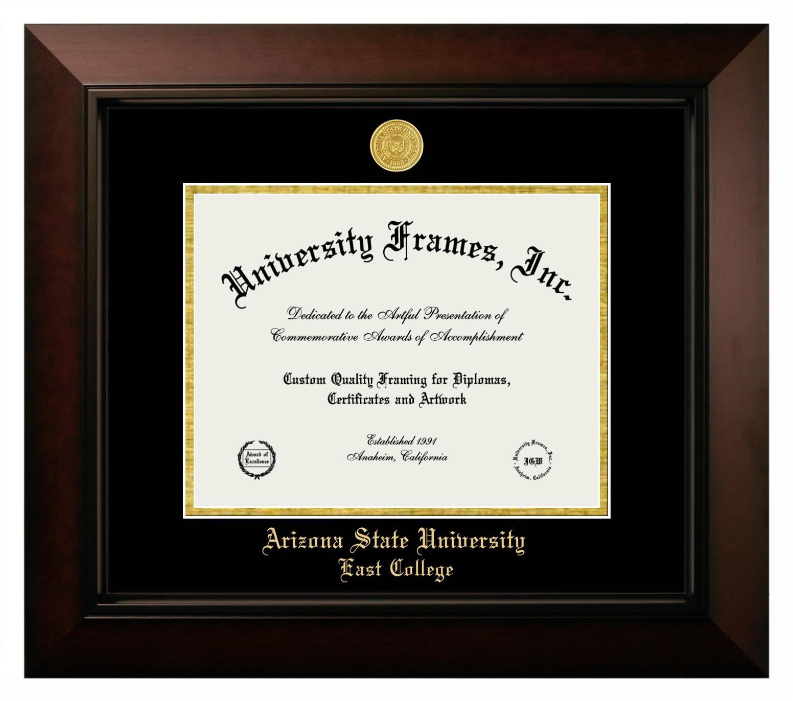 Are you a Arizona State University East College graduate looking for an officially licensed diploma frame to showcase your achievement? Or, are you looking for a unique graduation gift for a recent Arizona State University East College graduate or alum? You have come to the right place! Our officially licensed custom diploma frames have the original seal of Arizona State University East College. Each of our degree frames is handcrafted to offer the highest quality and precision. You can easily customize your graduation frames according to your style and preference. Start customizing your college diploma frame now!