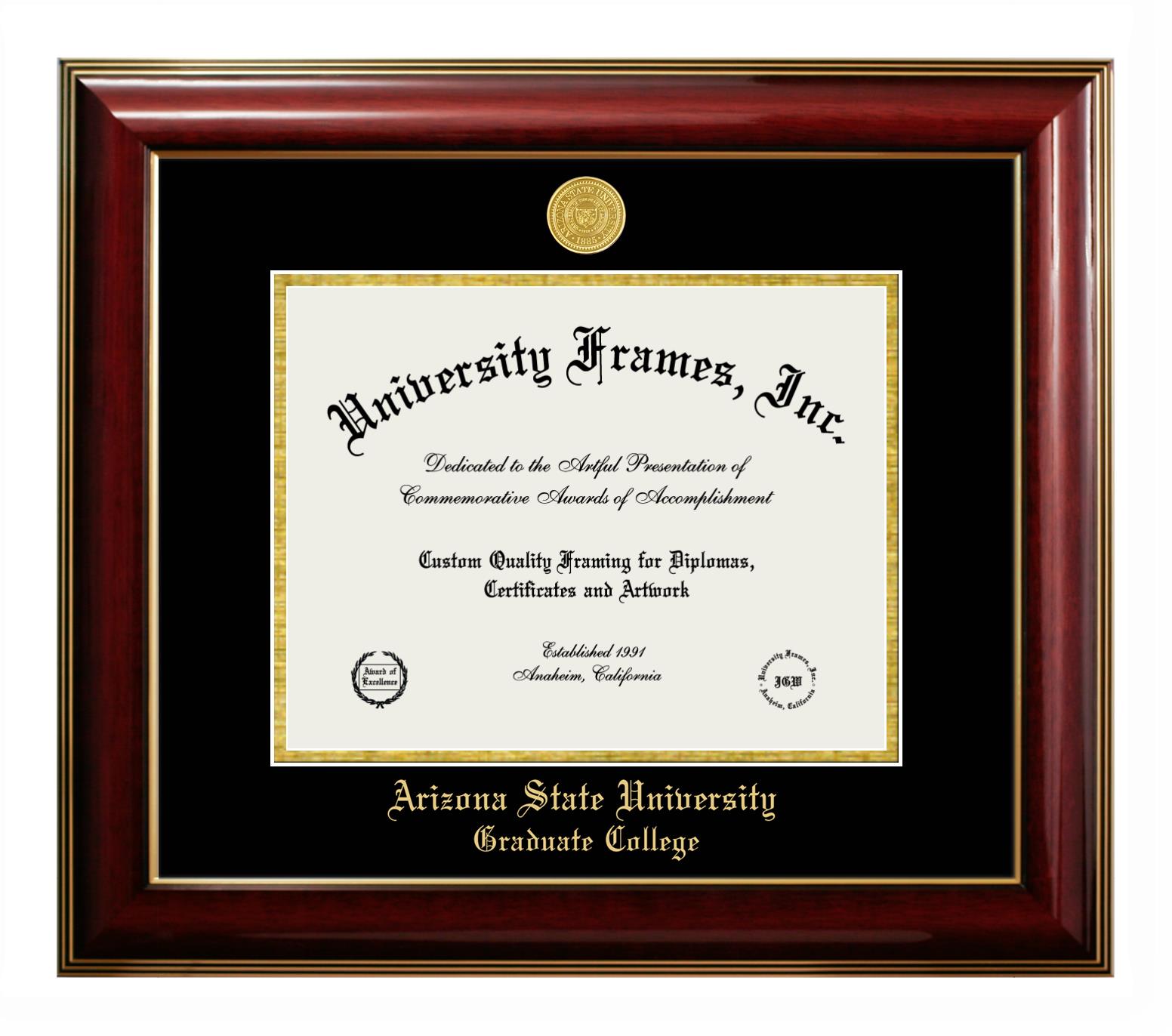 Are you a Arizona State University Graduate College graduate looking for an officially licensed diploma frame to showcase your achievement? Or, are you looking for a unique graduation gift for a recent Arizona State University Graduate College graduate or alum? You have come to the right place! Our officially licensed custom diploma frames have the original seal of Arizona State University Graduate College. Each of our degree frames is handcrafted to offer the highest quality and precision. You can easily customize your graduation frames according to your style and preference. Start customizing your college diploma frame now!
