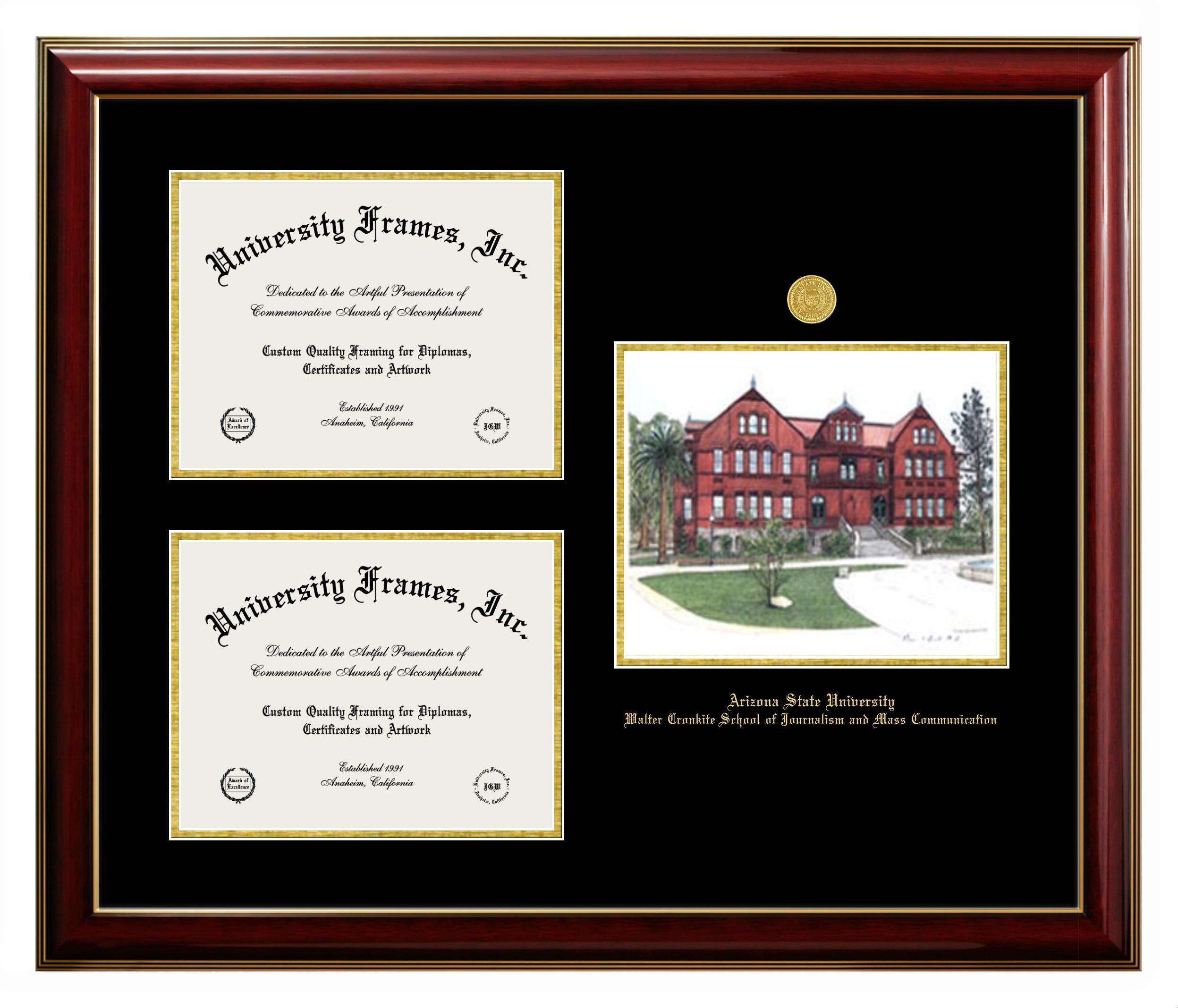 Are you a Arizona State University Walter Cronkite School of Journalism and Mass Communication graduate looking for an officially licensed diploma frame to showcase your achievement? Or, are you looking for a unique graduation gift for a recent Arizona State University Walter Cronkite School of Journalism and Mass Communication graduate or alum? You have come to the right place! Our officially licensed custom diploma frames have the original seal of Arizona State University Walter Cronkite School of Journalism and Mass Communication. Each of our degree frames is handcrafted to offer the highest quality and precision. You can easily customize your graduation frames according to your style and preference. Start customizing your college diploma frame now!