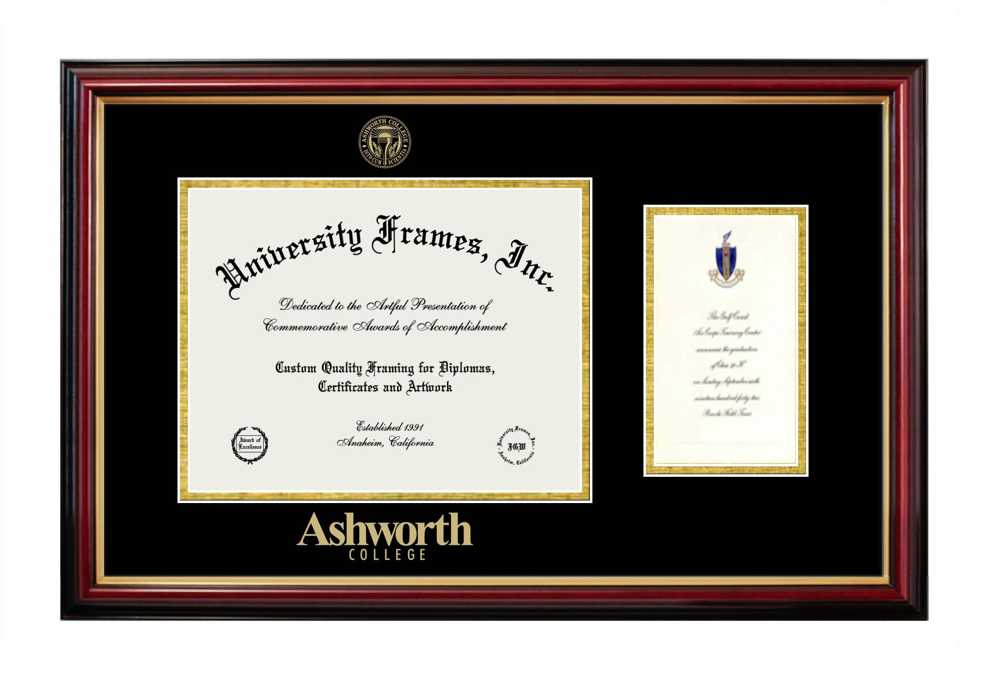 Are you a Ashworth College graduate looking for an officially licensed diploma frame to showcase your achievement? Or, are you looking for a unique graduation gift for a recent Ashworth College graduate or alum? You have come to the right place! Our officially licensed custom diploma frames have the original seal of Ashworth College. Each of our degree frames is handcrafted to offer the highest quality and precision. You can easily customize your graduation frames according to your style and preference. Start customizing your college diploma frame now!