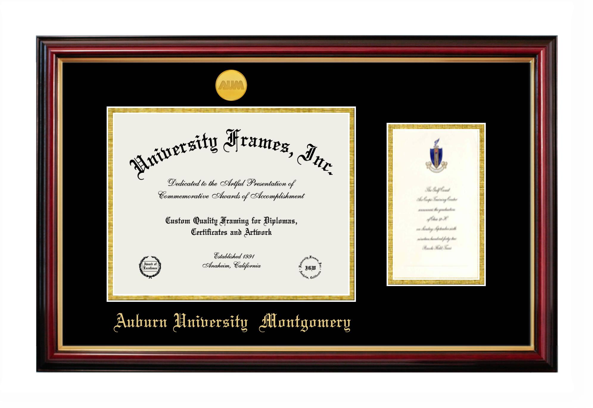 Are you a Auburn University Montgomery graduate looking for an officially licensed diploma frame to showcase your achievement? Or, are you looking for a unique graduation gift for a recent Auburn University Montgomery graduate or alum? You have come to the right place! Our officially licensed custom diploma frames have the original seal of Auburn University Montgomery. Each of our degree frames is handcrafted to offer the highest quality and precision. You can easily customize your graduation frames according to your style and preference. Start customizing your college diploma frame now!