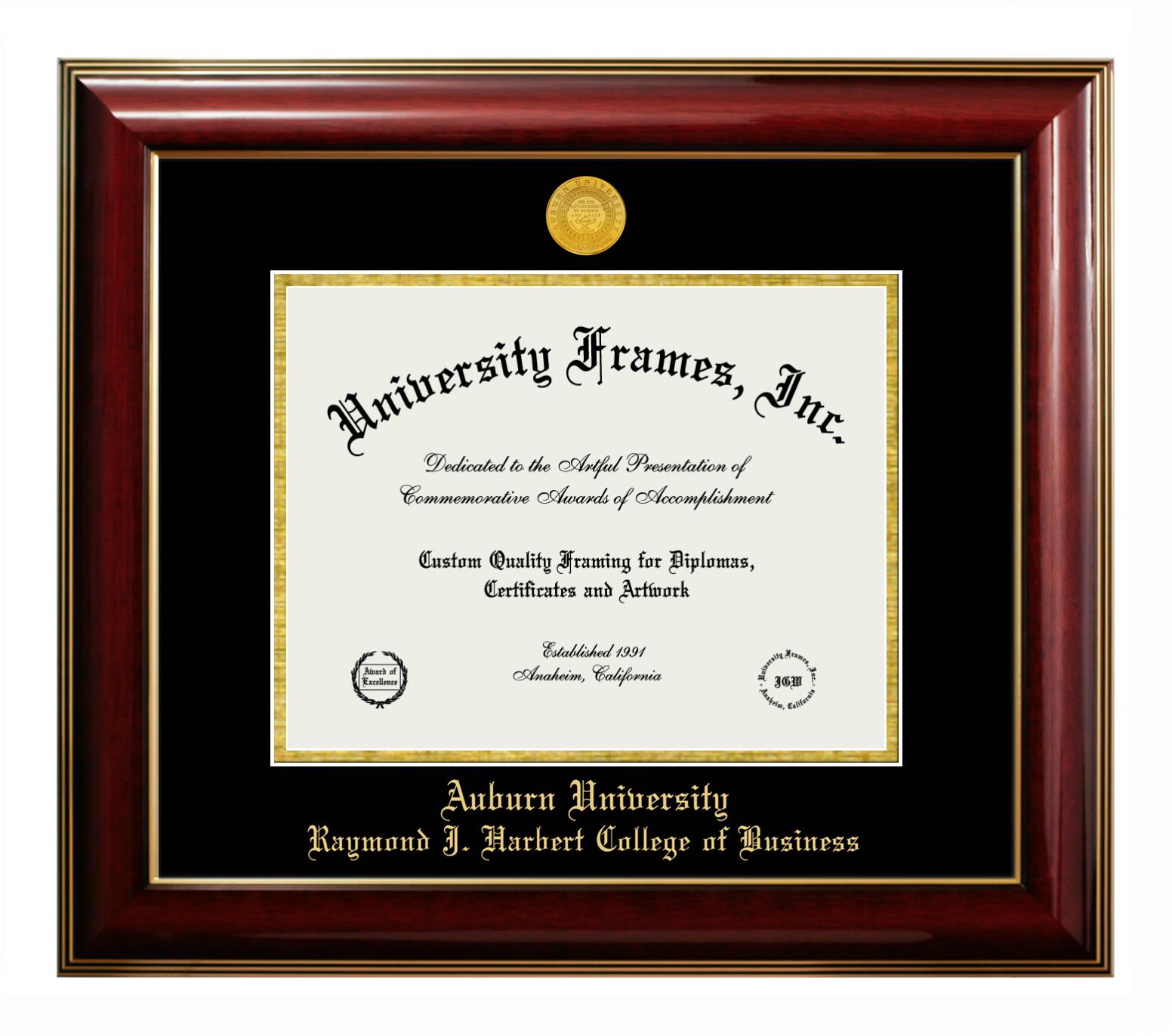 Are you a Auburn University Raymond J. Harbert College of Business graduate looking for an officially licensed diploma frame to showcase your achievement? Or, are you looking for a unique graduation gift for a recent Auburn University Raymond J. Harbert College of Business graduate or alum? You have come to the right place! Our officially licensed custom diploma frames have the original seal of Auburn University Raymond J. Harbert College of Business. Each of our degree frames is handcrafted to offer the highest quality and precision. You can easily customize your graduation frames according to your style and preference. Start customizing your college diploma frame now!