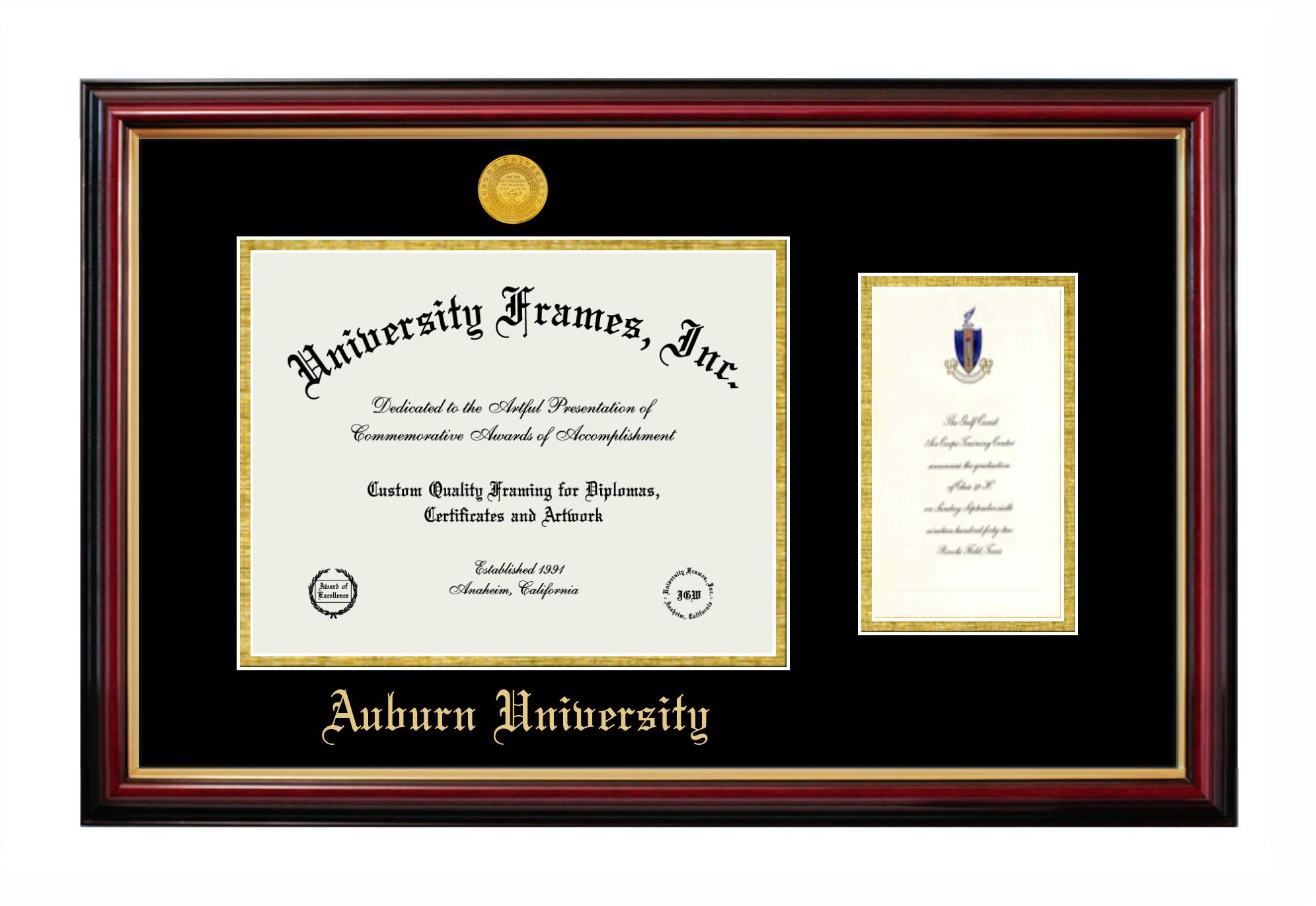 Are you a Auburn University graduate looking for an officially licensed diploma frame to showcase your achievement? Or, are you looking for a unique graduation gift for a recent Auburn University graduate or alum? You have come to the right place! Our officially licensed custom diploma frames have the original seal of Auburn University. Each of our degree frames is handcrafted to offer the highest quality and precision. You can easily customize your graduation frames according to your style and preference. Start customizing your college diploma frame now!