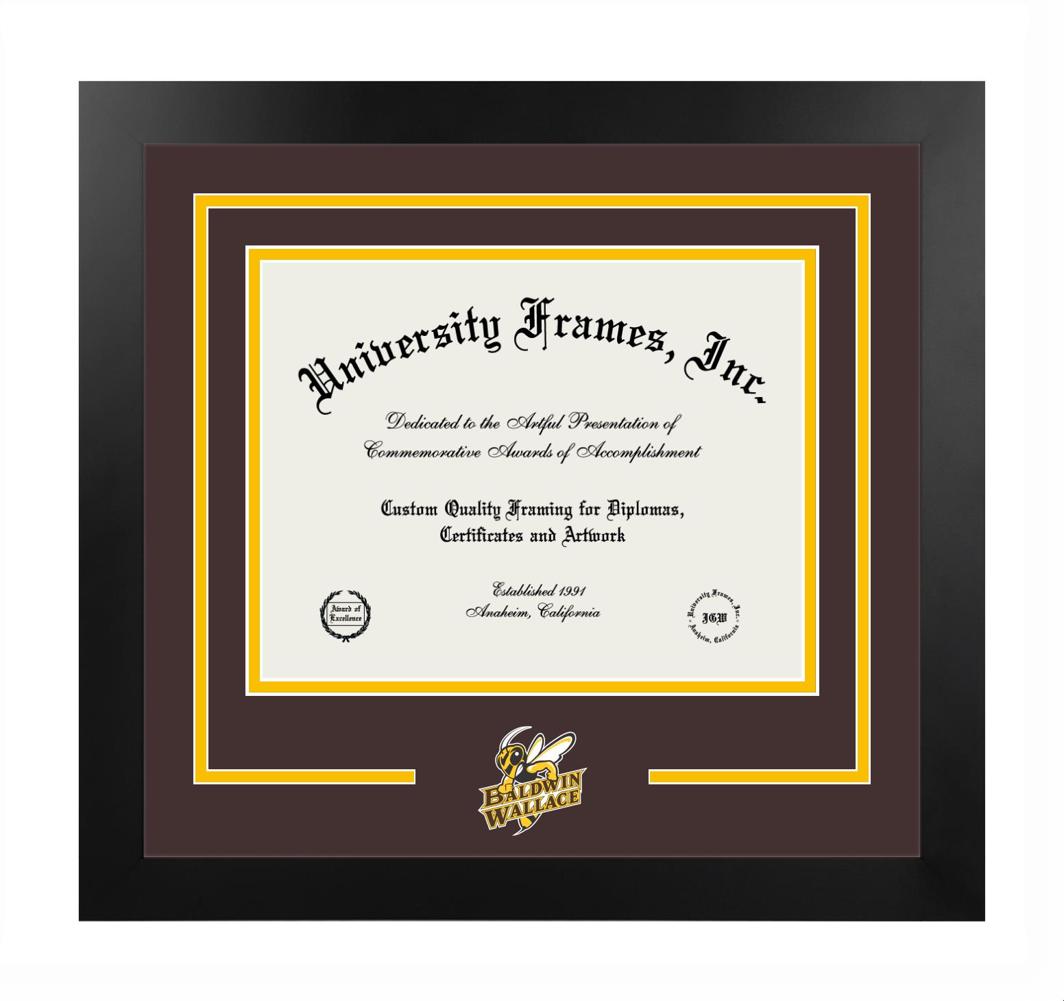 Are you a Baldwin Wallace University graduate looking for an officially licensed diploma frame to showcase your achievement? Or, are you looking for a unique graduation gift for a recent Baldwin Wallace University graduate or alum? You have come to the right place! Our officially licensed custom diploma frames have the original seal of Baldwin Wallace University. Each of our degree frames is handcrafted to offer the highest quality and precision. You can easily customize your graduation frames according to your style and preference. Start customizing your college diploma frame now!