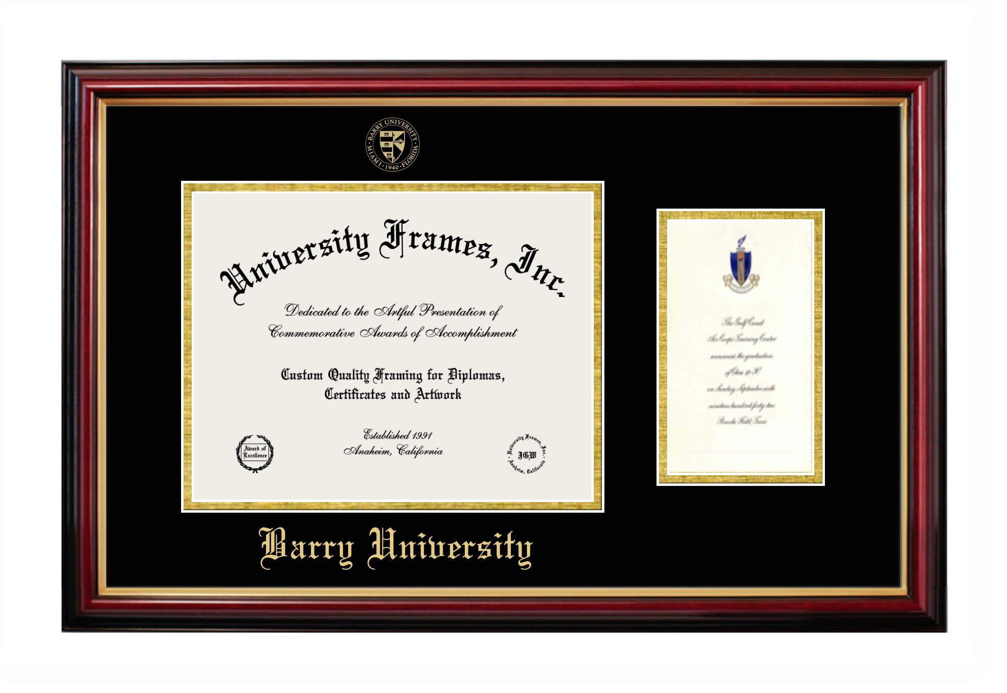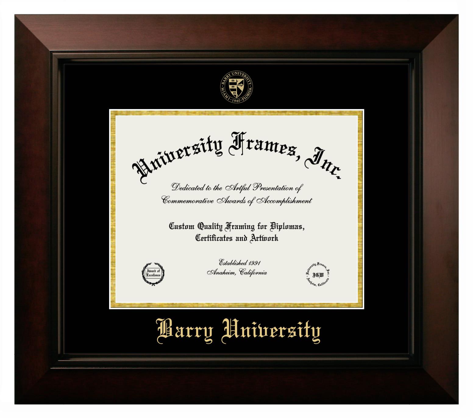 Are you a Barry University graduate looking for an officially licensed diploma frame to showcase your achievement? Or, are you looking for a unique graduation gift for a recent Barry University graduate or alum? You have come to the right place! Our officially licensed custom diploma frames have the original seal of Barry University. Each of our degree frames is handcrafted to offer the highest quality and precision. You can easily customize your graduation frames according to your style and preference. Start customizing your college diploma frame now!