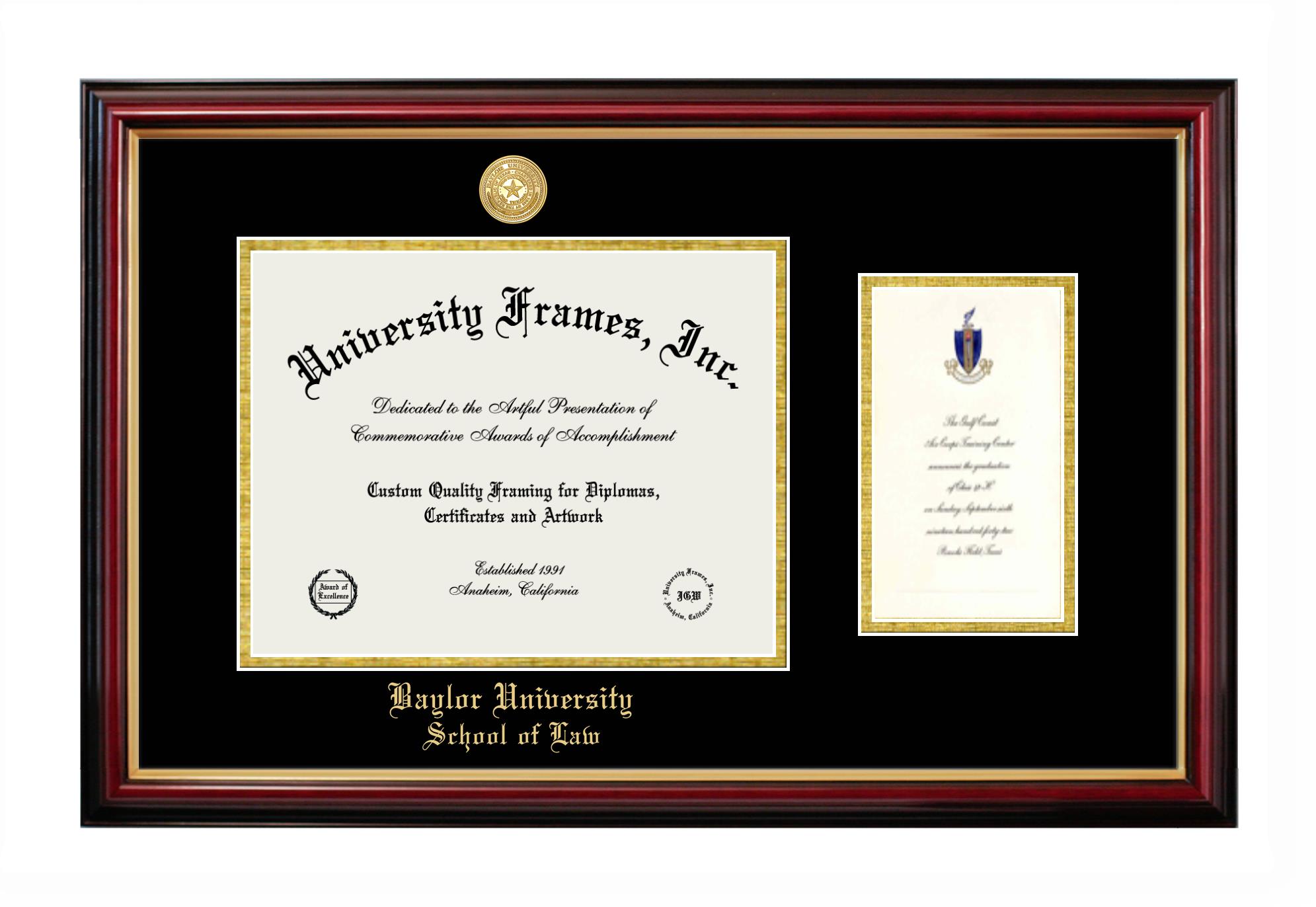 Are you a Baylor University School of Law graduate looking for an officially licensed diploma frame to showcase your achievement? Or, are you looking for a unique graduation gift for a recent Baylor University School of Law graduate or alum? You have come to the right place! Our officially licensed custom diploma frames have the original seal of Baylor University School of Law. Each of our degree frames is handcrafted to offer the highest quality and precision. You can easily customize your graduation frames according to your style and preference. Start customizing your college diploma frame now!