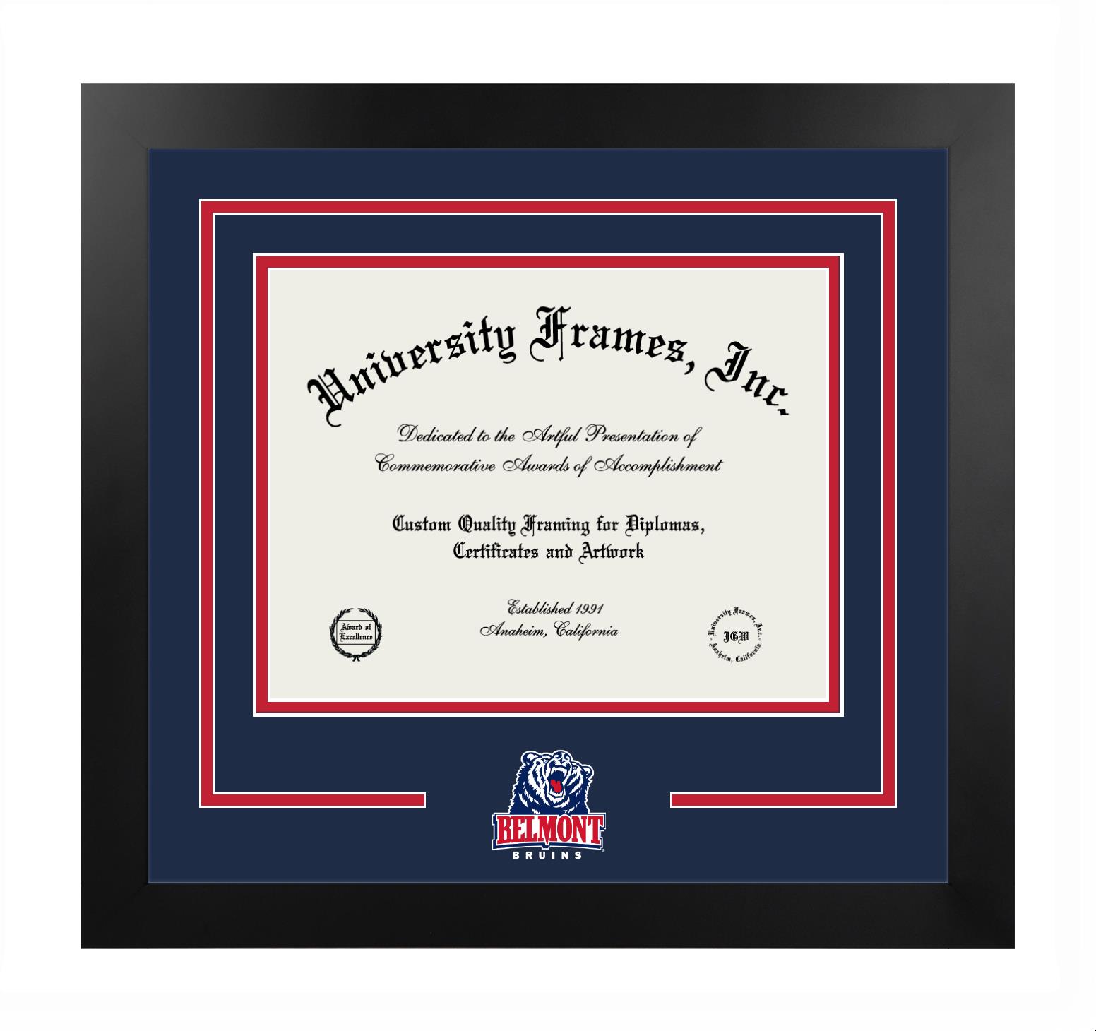 Are you a Belmont University graduate looking for an officially licensed diploma frame to showcase your achievement? Or, are you looking for a unique graduation gift for a recent Belmont University graduate or alum? You have come to the right place! Our officially licensed custom diploma frames have the original seal of Belmont University. Each of our degree frames is handcrafted to offer the highest quality and precision. You can easily customize your graduation frames according to your style and preference. Start customizing your college diploma frame now!