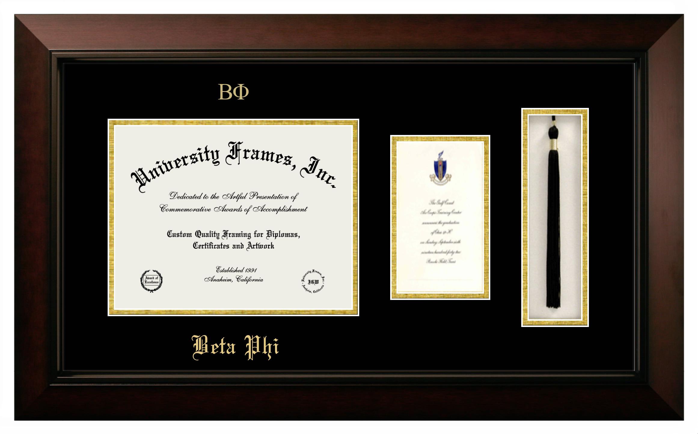 Are you a Beta Phi graduate looking for an officially licensed diploma frame to showcase your achievement? Or, are you looking for a unique graduation gift for a recent Beta Phi graduate or alum? You have come to the right place! Our officially licensed custom diploma frames have the original seal of Beta Phi. Each of our degree frames is handcrafted to offer the highest quality and precision. You can easily customize your graduation frames according to your style and preference. Start customizing your college diploma frame now!
