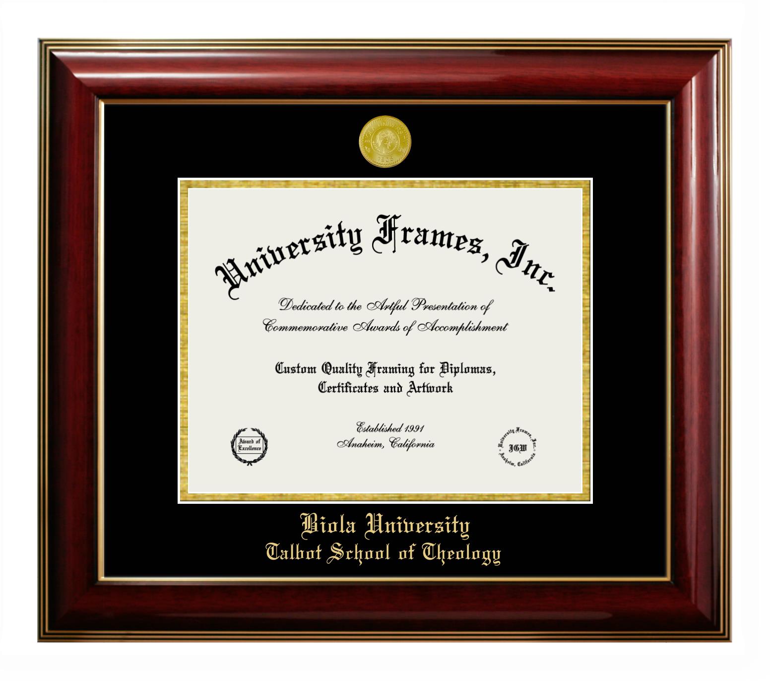 Are you a Biola University Talbot School of Theology graduate looking for an officially licensed diploma frame to showcase your achievement? Or, are you looking for a unique graduation gift for a recent Biola University Talbot School of Theology graduate or alum? You have come to the right place! Our officially licensed custom diploma frames have the original seal of Biola University Talbot School of Theology . Each of our degree frames is handcrafted to offer the highest quality and precision. You can easily customize your graduation frames according to your style and preference. Start customizing your college diploma frame now!