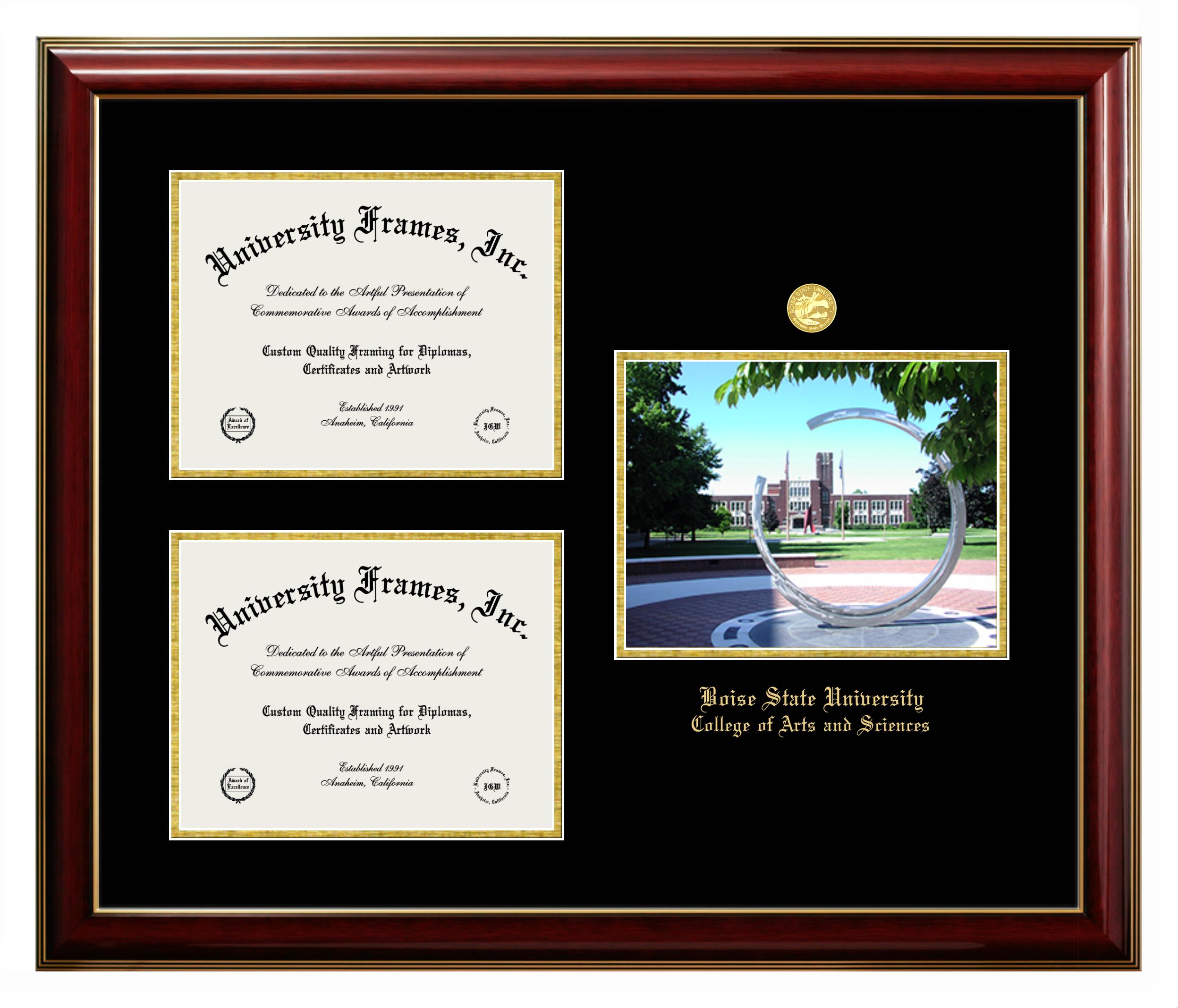 Are you a Boise State University College of Arts and Sciences graduate looking for an officially licensed diploma frame to showcase your achievement? Or, are you looking for a unique graduation gift for a recent Boise State University College of Arts and Sciences graduate or alum? You have come to the right place! Our officially licensed custom diploma frames have the original seal of Boise State University College of Arts and Sciences. Each of our degree frames is handcrafted to offer the highest quality and precision. You can easily customize your graduation frames according to your style and preference. Start customizing your college diploma frame now!
