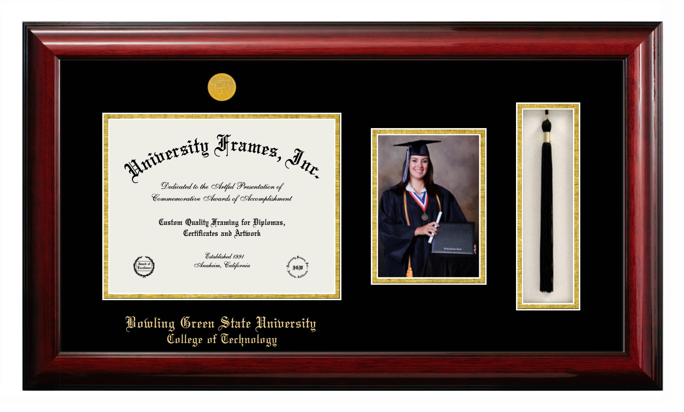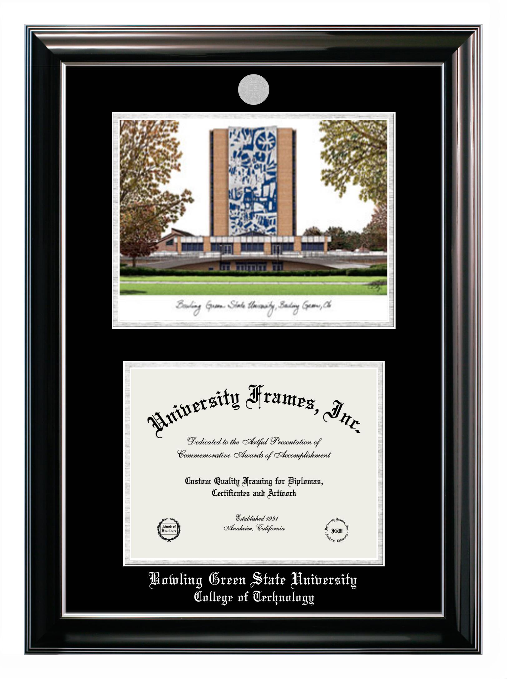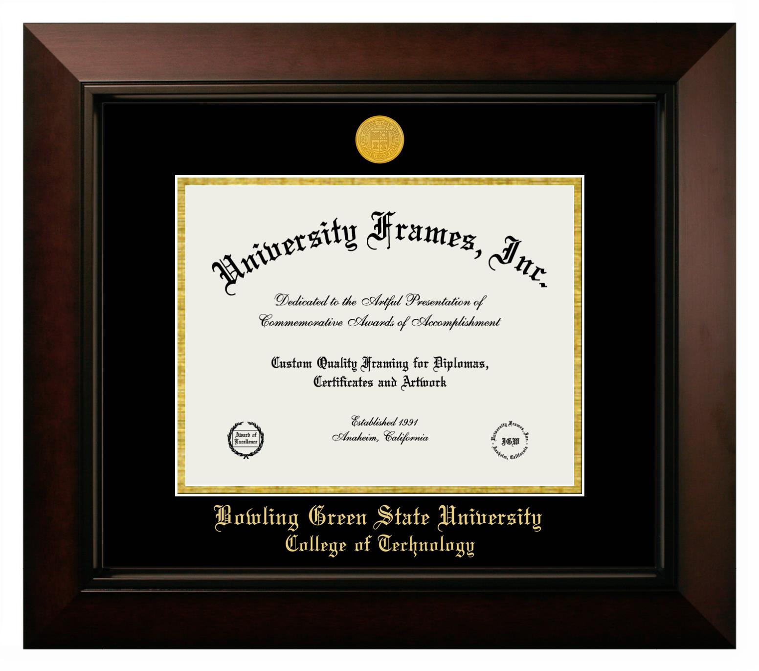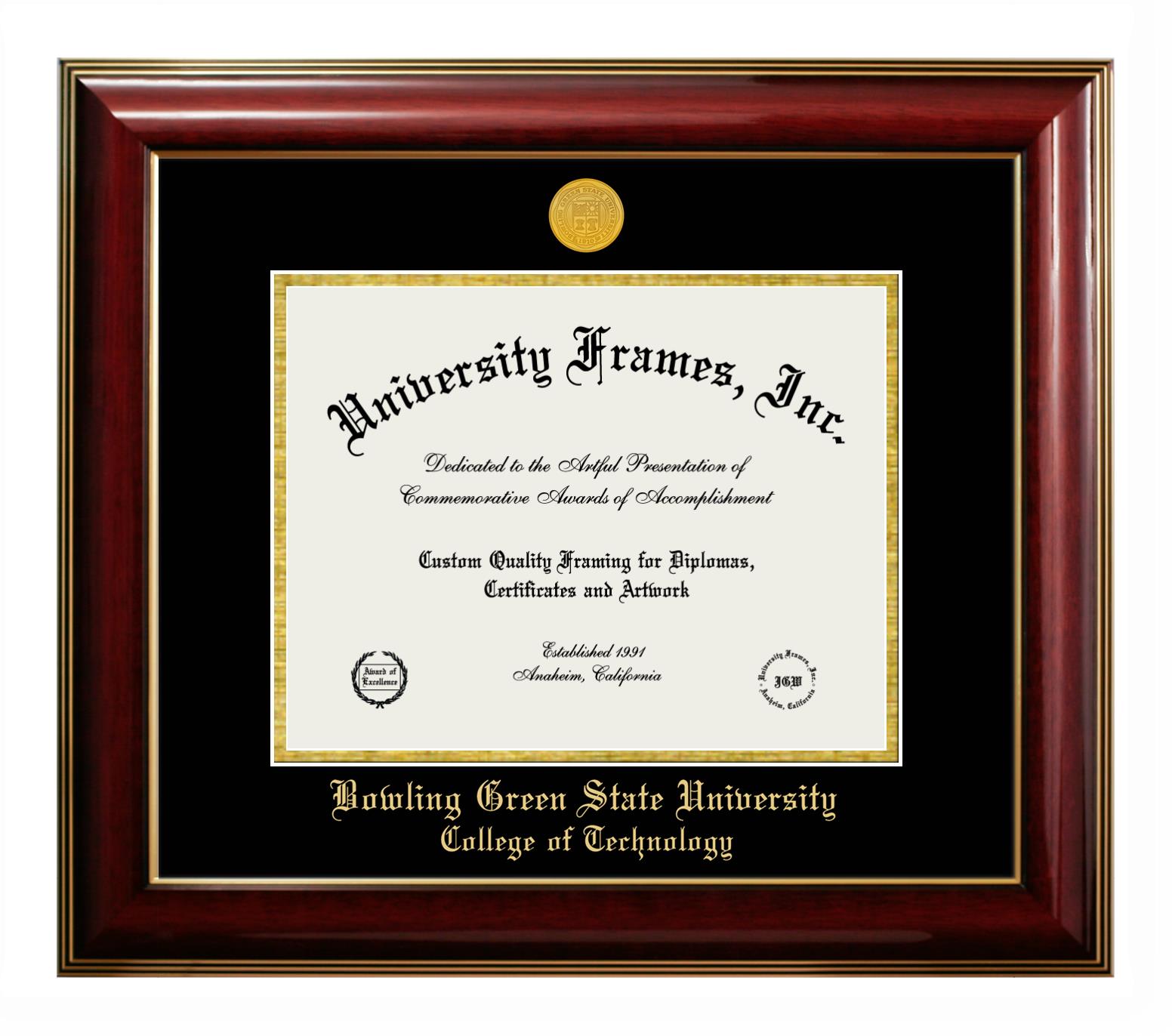 If you are a recent Bowling Green State University College of Technology graduate or an alum looking for a professional diploma frame to show off your accomplishment, look no further. We provide officially licensed custom diploma frames that come with the original Bowling Green State University College of Technology seal. Our handcrafted degree frames make an ideal graduation gift for any Bowling Green State University College of Technology recent graduate or alum. Each diploma frame is carefully crafted and inspected for quality and precision. Our graduation frames can be easily customized according to your taste and preference. Customize your college diploma frame now!