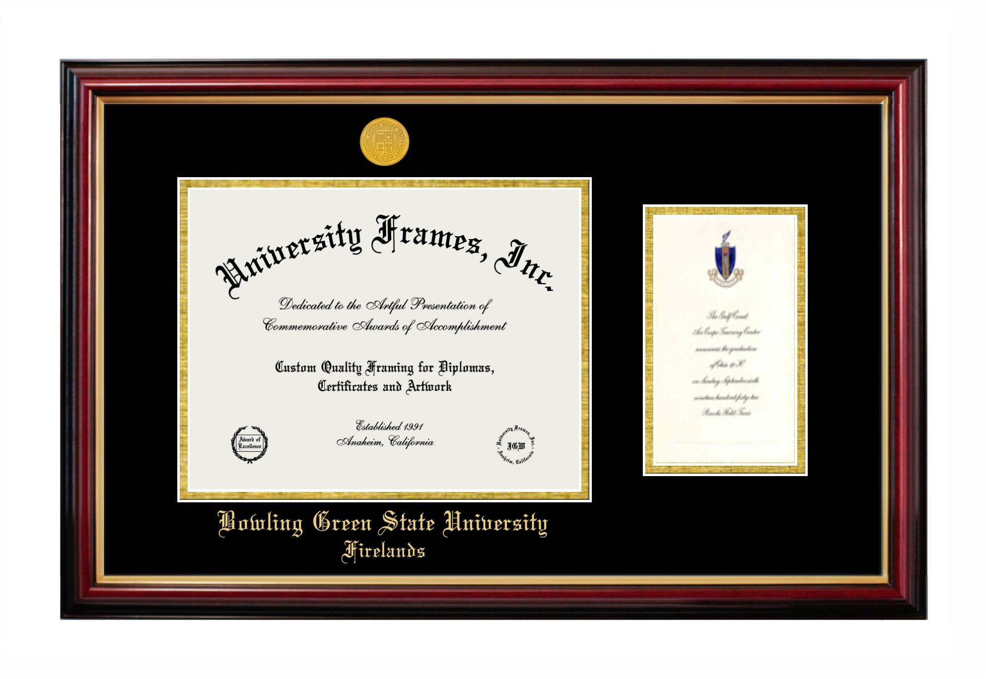 If you are a recent Bowling Green State University Firelands graduate or an alum looking for a professional diploma frame to show off your accomplishment, look no further. We provide officially licensed custom diploma frames that come with the original Bowling Green State University Firelands seal. Our handcrafted degree frames make an ideal graduation gift for any Bowling Green State University Firelands recent graduate or alum. Each diploma frame is carefully crafted and inspected for quality and precision. Our graduation frames can be easily customized according to your taste and preference. Customize your college diploma frame now!