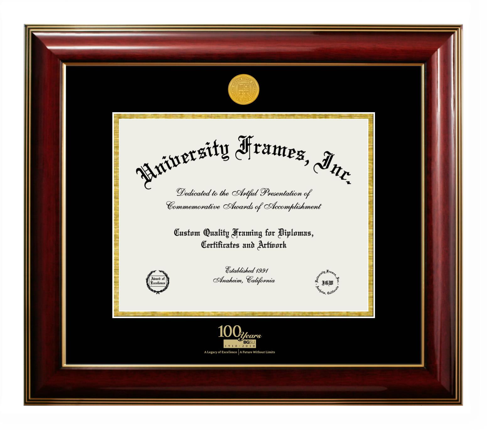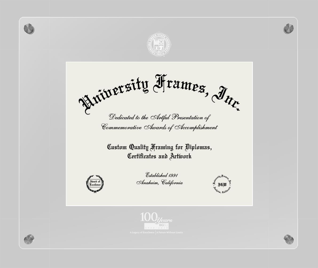 If you are a recent Bowling Green State University Special Centennial graduate or an alum looking for a professional diploma frame to show off your accomplishment, look no further. We provide officially licensed custom diploma frames that come with the original Bowling Green State University Special Centennial seal. Our handcrafted degree frames make an ideal graduation gift for any Bowling Green State University Special Centennial recent graduate or alum. Each diploma frame is carefully crafted and inspected for quality and precision. Our graduation frames can be easily customized according to your taste and preference. Customize your college diploma frame now!