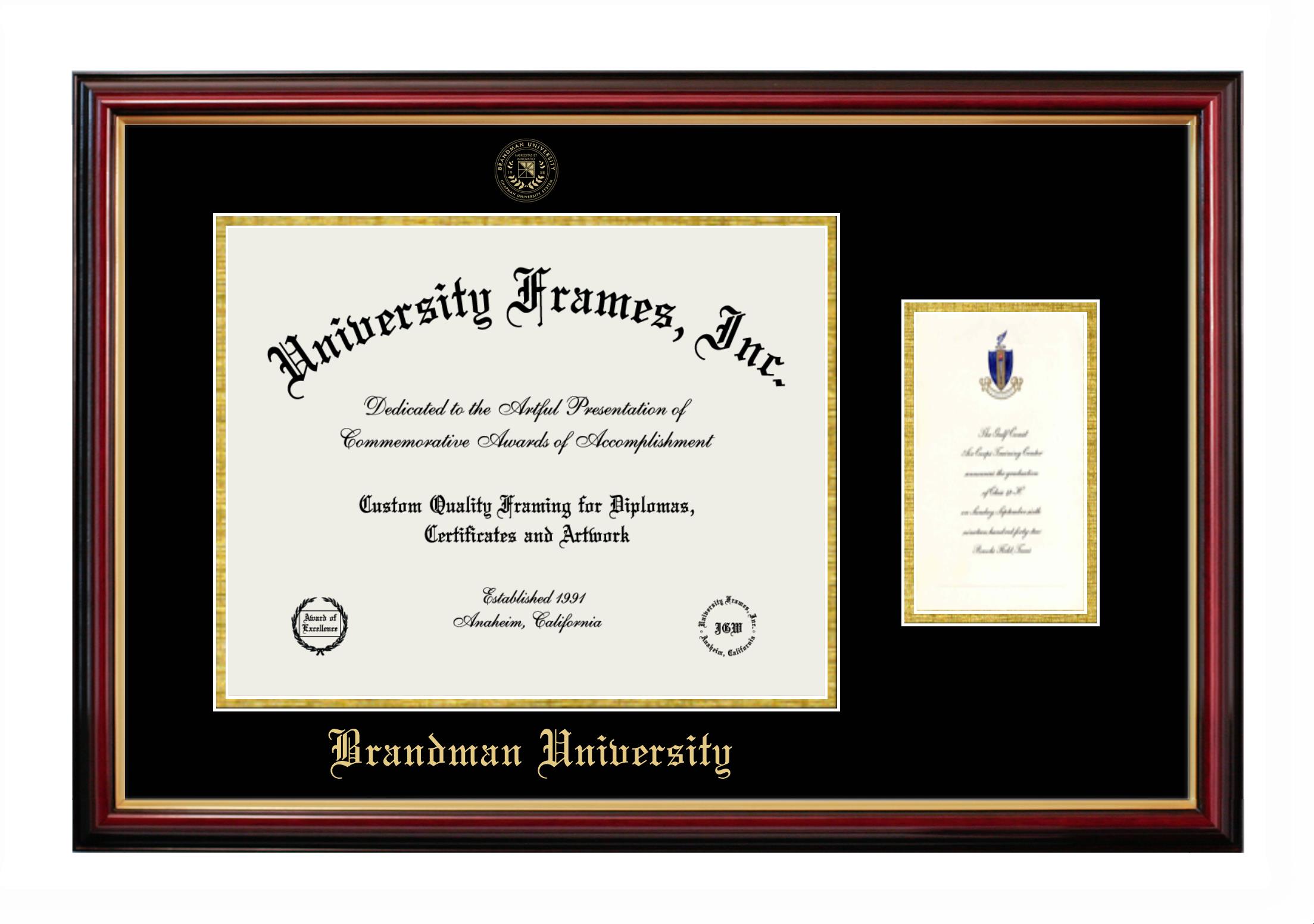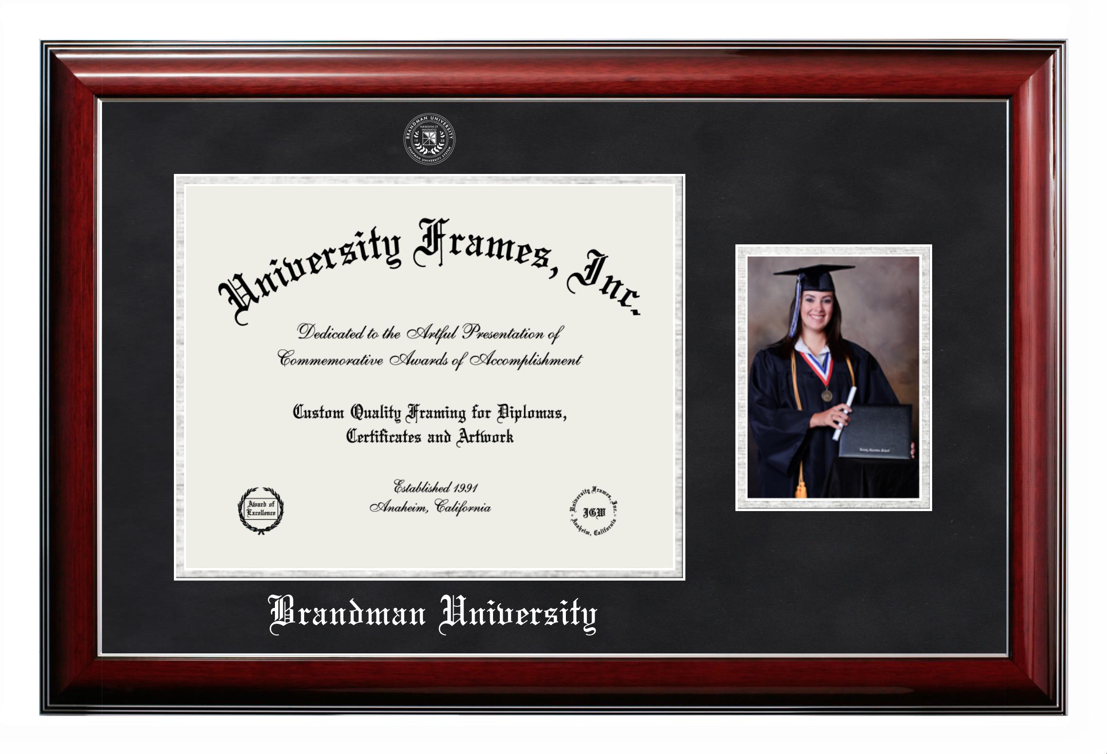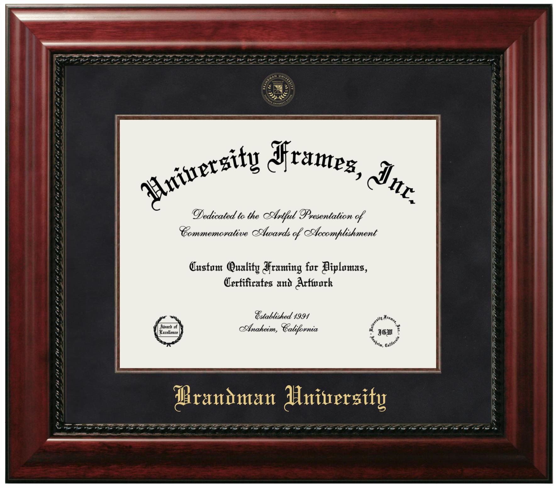 If you are a recent Brandman University graduate or an alum looking for a professional diploma frame to show off your accomplishment, look no further. We provide officially licensed custom diploma frames that come with the original Brandman University seal. Our handcrafted degree frames make an ideal graduation gift for any Brandman University recent graduate or alum. Each diploma frame is carefully crafted and inspected for quality and precision. Our graduation frames can be easily customized according to your taste and preference. Customize your college diploma frame now!