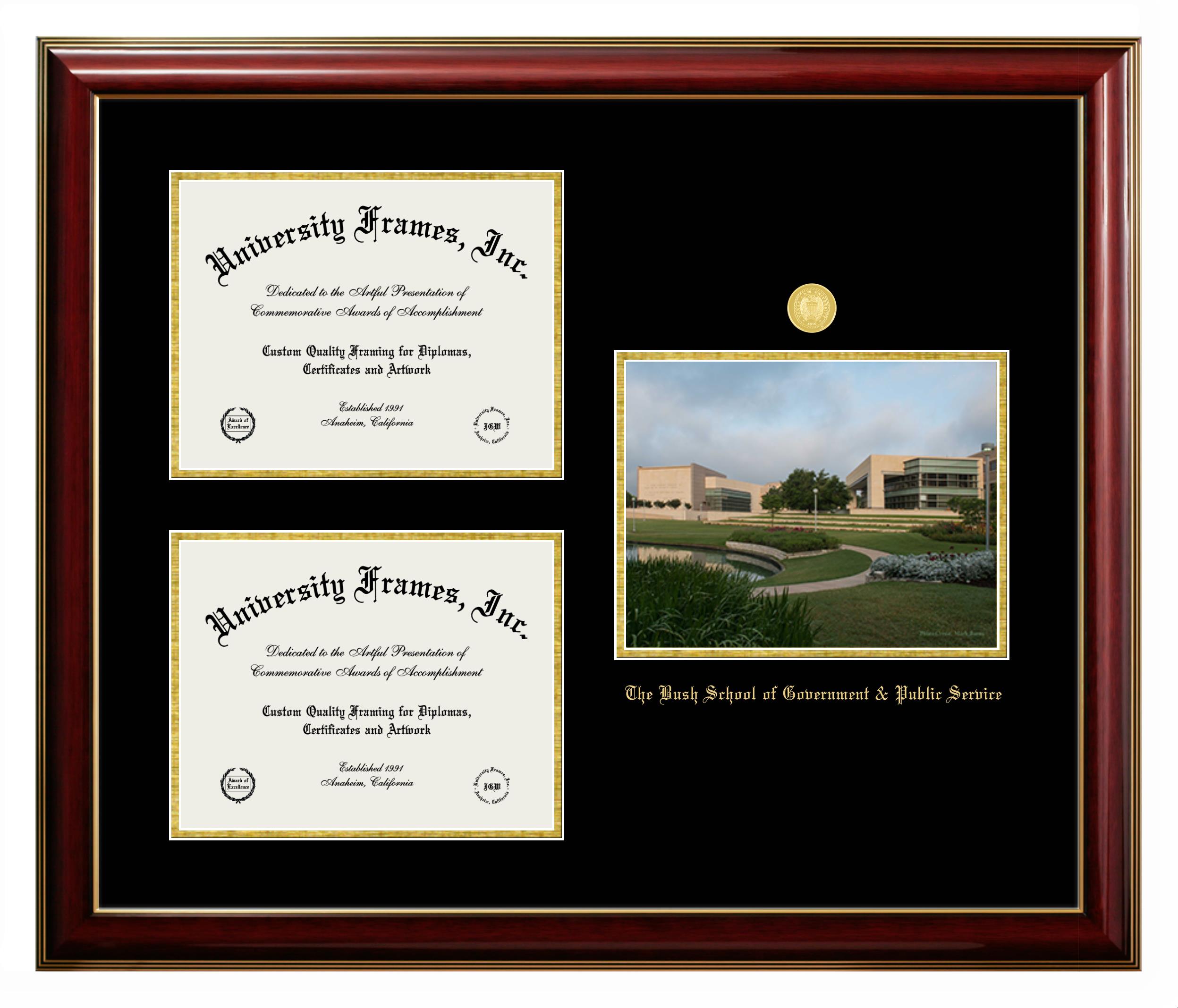 Want a professional diploma frame to showcase your achievement? Or are you looking for a fantastic graduation gift for a new grad or alum? Our official Bush School of Government & Public Service diploma frames are the best option to showcase any well-deserved diploma. Handcrafted in the USA, our best-in-class degree frames are custom-designed for the official Bush School of Government & Public Service diploma. You can customize your frame with our hassle-free online design tool. Start customizing your diploma frame now!
