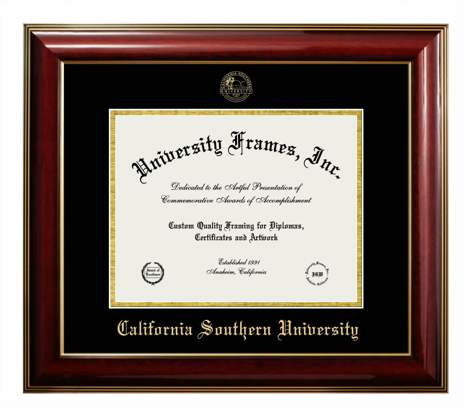 If you are a recent California Southern University graduate or an alum looking for a professional diploma frame to show off your accomplishment, look no further. We provide officially licensed custom diploma frames that come with the original California Southern University seal. Our handcrafted degree frames make an ideal graduation gift for any California Southern University recent graduate or alum. Each diploma frame is carefully crafted and inspected for quality and precision. Our graduation frames can be easily customized according to your taste and preference. Customize your college diploma frame now!