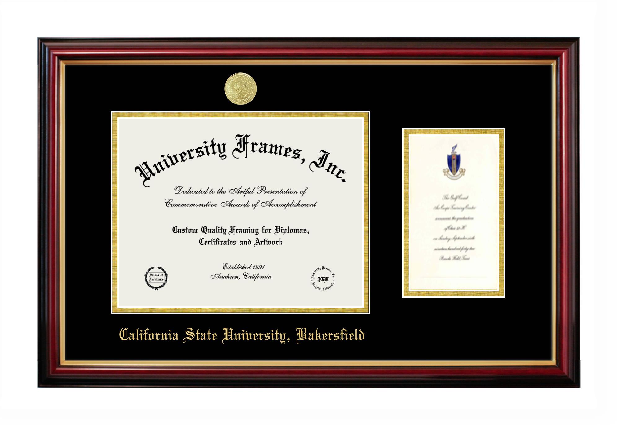 If you are a recent California State University, Bakersfield graduate or an alum looking for a professional diploma frame to show off your accomplishment, look no further. We provide officially licensed custom diploma frames that come with the original California State University, Bakersfield seal. Our handcrafted degree frames make an ideal graduation gift for any California State University, Bakersfield recent graduate or alum. Each diploma frame is carefully crafted and inspected for quality and precision. Our graduation frames can be easily customized according to your taste and preference. Customize your college diploma frame now!