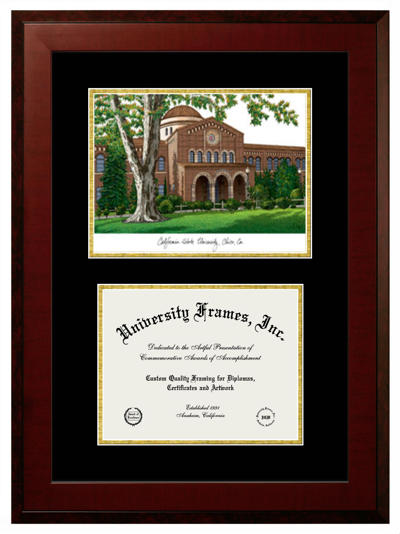 If you are a recent California State University, Chico graduate or an alum looking for a professional diploma frame to show off your accomplishment, look no further. We provide officially licensed custom diploma frames that come with the original California State University, Chico seal. Our handcrafted degree frames make an ideal graduation gift for any California State University, Chico recent graduate or alum. Each diploma frame is carefully crafted and inspected for quality and precision. Our graduation frames can be easily customized according to your taste and preference. Customize your college diploma frame now!