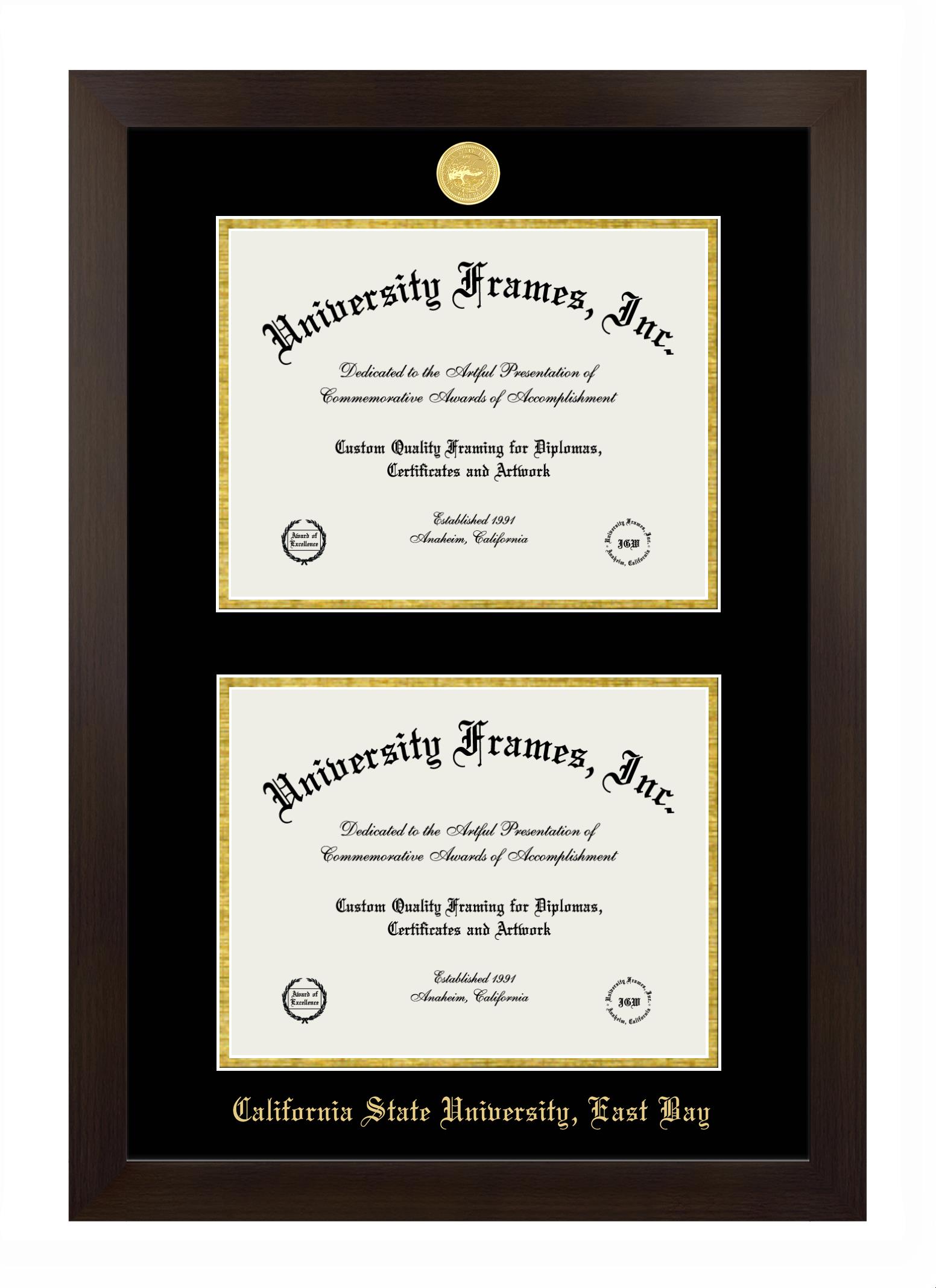 If you are a recent California State University, East Bay graduate or an alum looking for a professional diploma frame to show off your accomplishment, look no further. We provide officially licensed custom diploma frames that come with the original California State University, East Bay seal. Our handcrafted degree frames make an ideal graduation gift for any California State University, East Bay recent graduate or alum. Each diploma frame is carefully crafted and inspected for quality and precision. Our graduation frames can be easily customized according to your taste and preference. Customize your college diploma frame now!