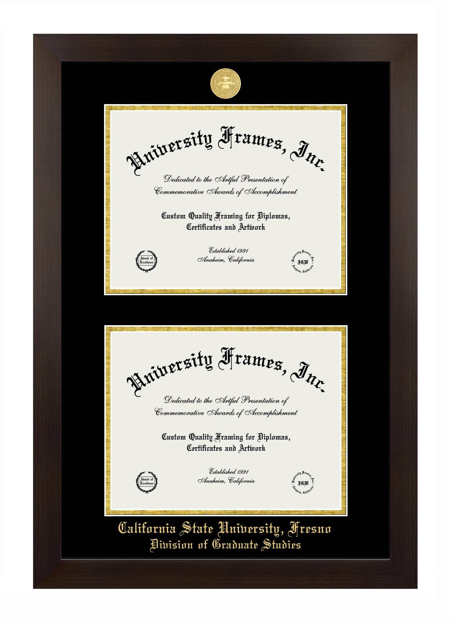 If you are a recent California State University, Fresno Division of Graduate Studies graduate or an alum looking for a professional diploma frame to show off your accomplishment, look no further. We provide officially licensed custom diploma frames that come with the original California State University, Fresno Division of Graduate Studies seal. Our handcrafted degree frames make an ideal graduation gift for any California State University, Fresno Division of Graduate Studies recent graduate or alum. Each diploma frame is carefully crafted and inspected for quality and precision. Our graduation frames can be easily customized according to your taste and preference. Customize your college diploma frame now!