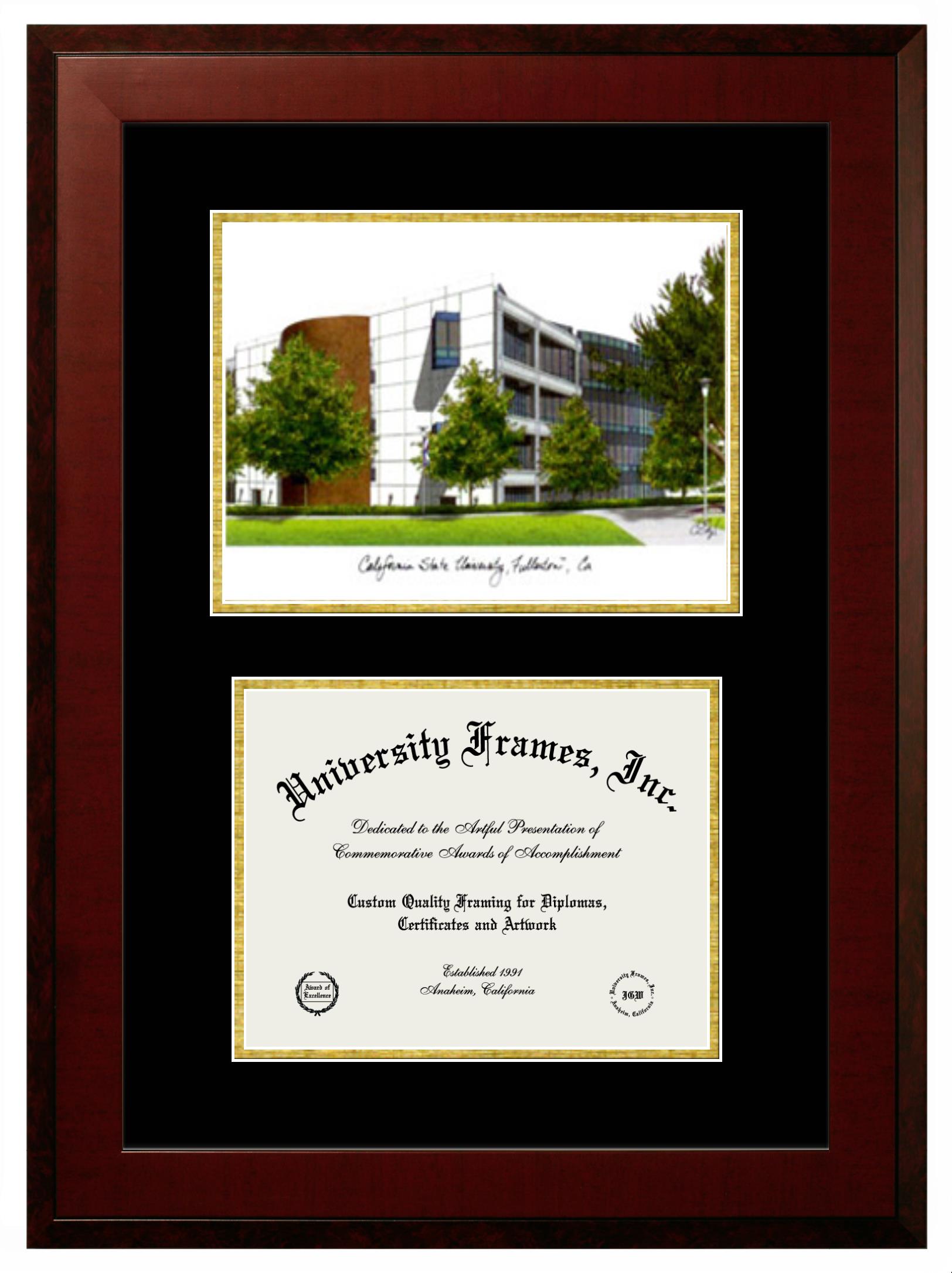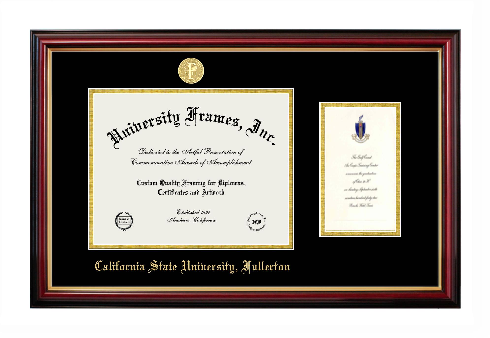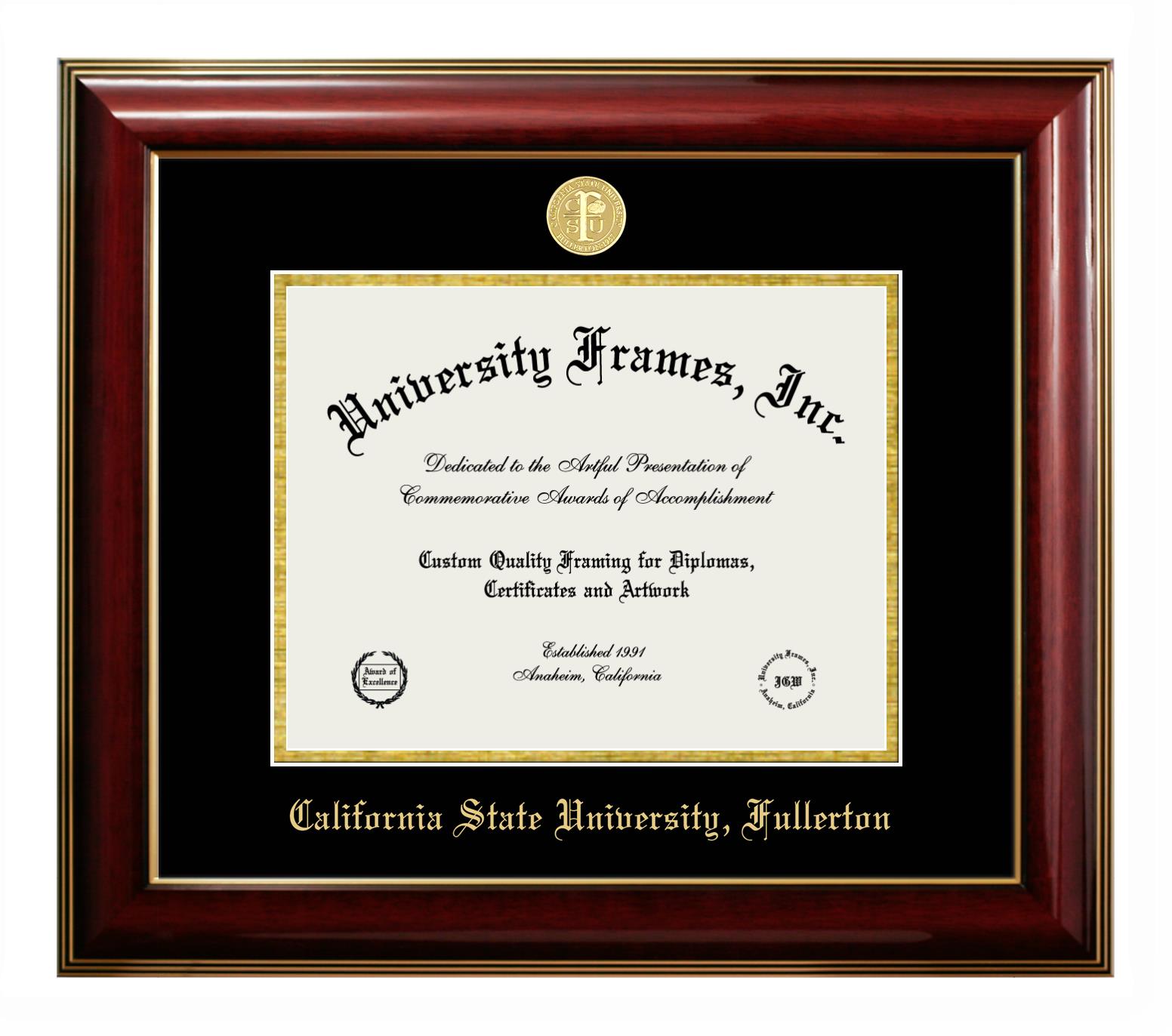 If you are a recent California State University, Fullerton graduate or an alum looking for a professional diploma frame to show off your accomplishment, look no further. We provide officially licensed custom diploma frames that come with the original California State University, Fullerton seal. Our handcrafted degree frames make an ideal graduation gift for any California State University, Fullerton recent graduate or alum. Each diploma frame is carefully crafted and inspected for quality and precision. Our graduation frames can be easily customized according to your taste and preference. Customize your college diploma frame now!