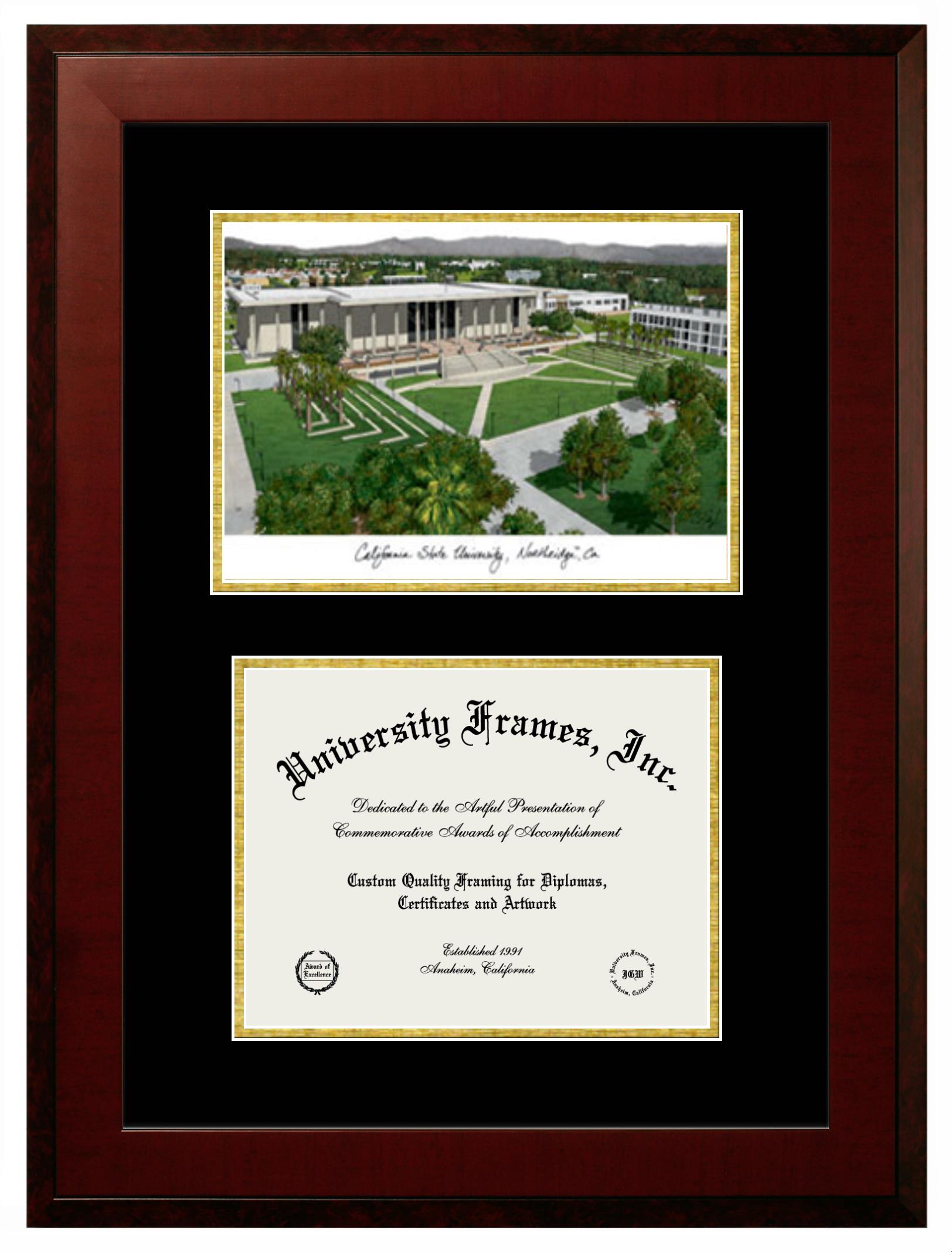 If you are a recent California State University, Northridge graduate or an alum looking for a professional diploma frame to show off your accomplishment, look no further. We provide officially licensed custom diploma frames that come with the original California State University, Northridge seal. Our handcrafted degree frames make an ideal graduation gift for any California State University, Northridge recent graduate or alum. Each diploma frame is carefully crafted and inspected for quality and precision. Our graduation frames can be easily customized according to your taste and preference. Customize your college diploma frame now!