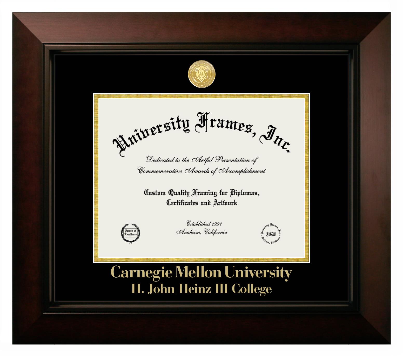 If you are a recent Carnegie Mellon University H. John Heinz III College graduate or an alum looking for a professional diploma frame to show off your accomplishment, look no further. We provide officially licensed custom diploma frames that come with the original Carnegie Mellon University H. John Heinz III College seal. Our handcrafted degree frames make an ideal graduation gift for any Carnegie Mellon University H. John Heinz III College recent graduate or alum. Each diploma frame is carefully crafted and inspected for quality and precision. Our graduation frames can be easily customized according to your taste and preference. Customize your college diploma frame now!