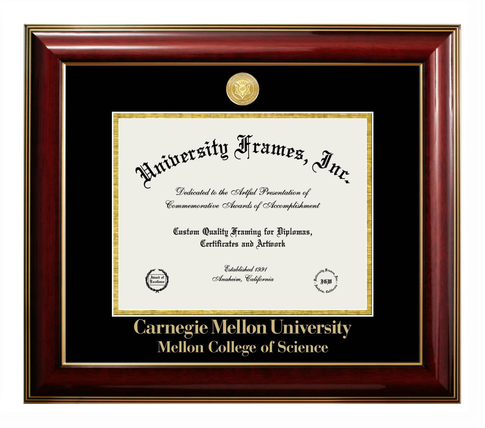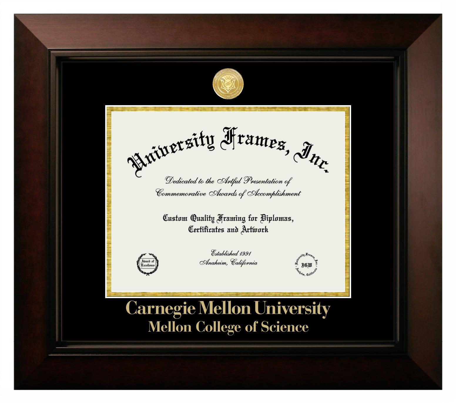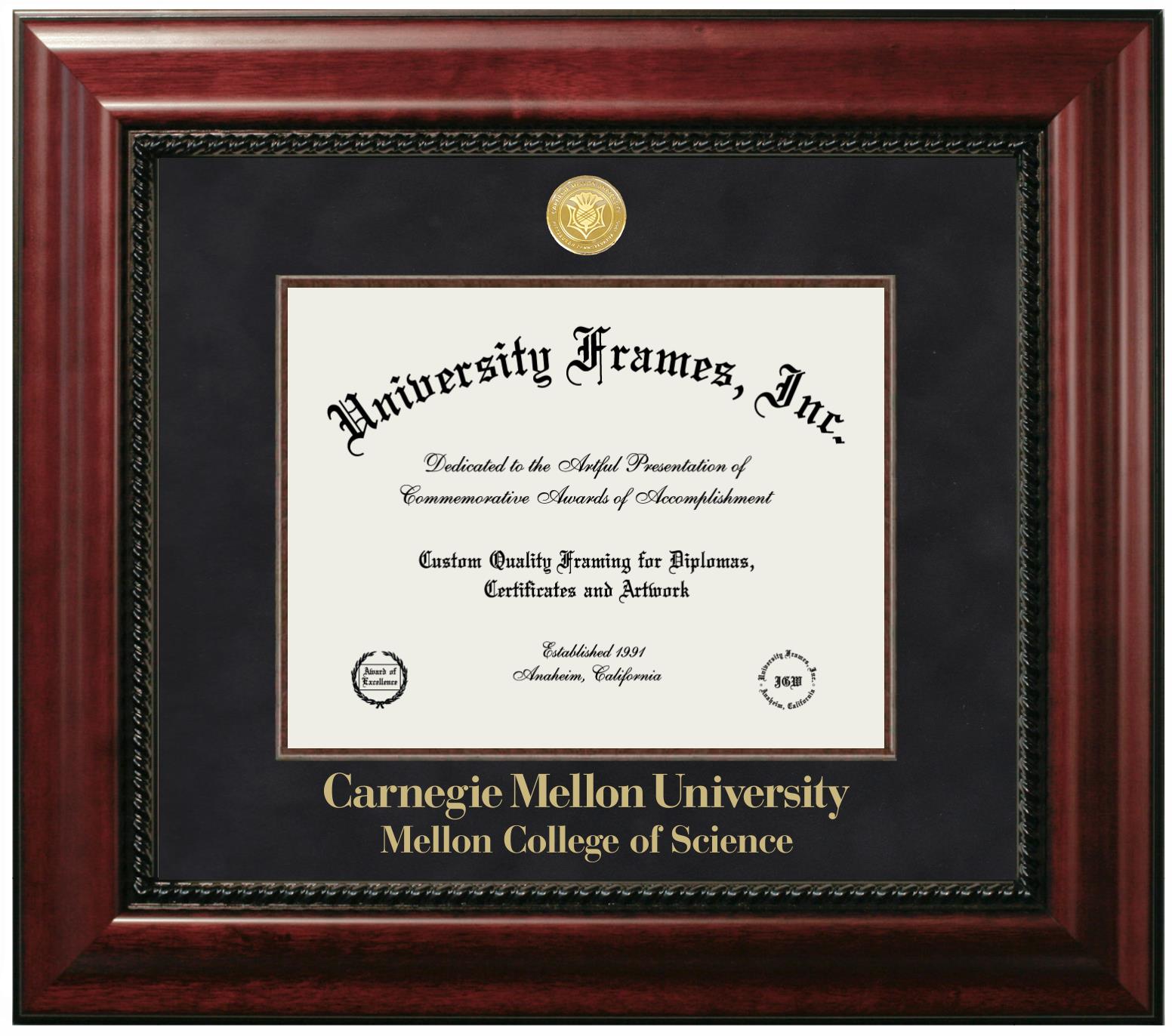 If you are a recent Carnegie Mellon University Mellon College of Science graduate or an alum looking for a professional diploma frame to show off your accomplishment, look no further. We provide officially licensed custom diploma frames that come with the original Carnegie Mellon University Mellon College of Science seal. Our handcrafted degree frames make an ideal graduation gift for any Carnegie Mellon University Mellon College of Science recent graduate or alum. Each diploma frame is carefully crafted and inspected for quality and precision. Our graduation frames can be easily customized according to your taste and preference. Customize your college diploma frame now!