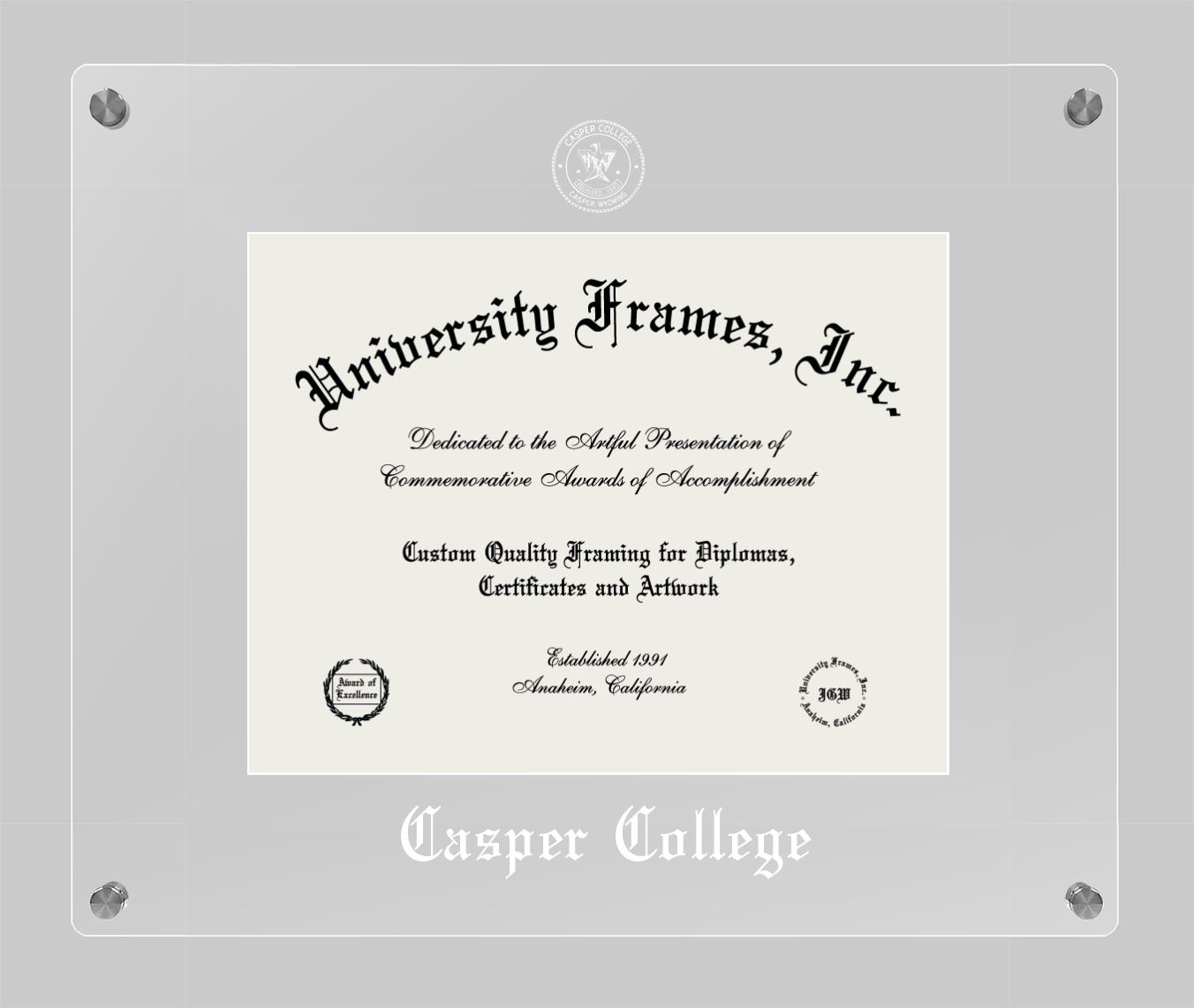 If you are a recent Casper College graduate or an alum looking for a professional diploma frame to show off your accomplishment, look no further. We provide officially licensed custom diploma frames that come with the original Casper College seal. Our handcrafted degree frames make an ideal graduation gift for any Casper College recent graduate or alum. Each diploma frame is carefully crafted and inspected for quality and precision. Our graduation frames can be easily customized according to your taste and preference. Customize your college diploma frame now!
