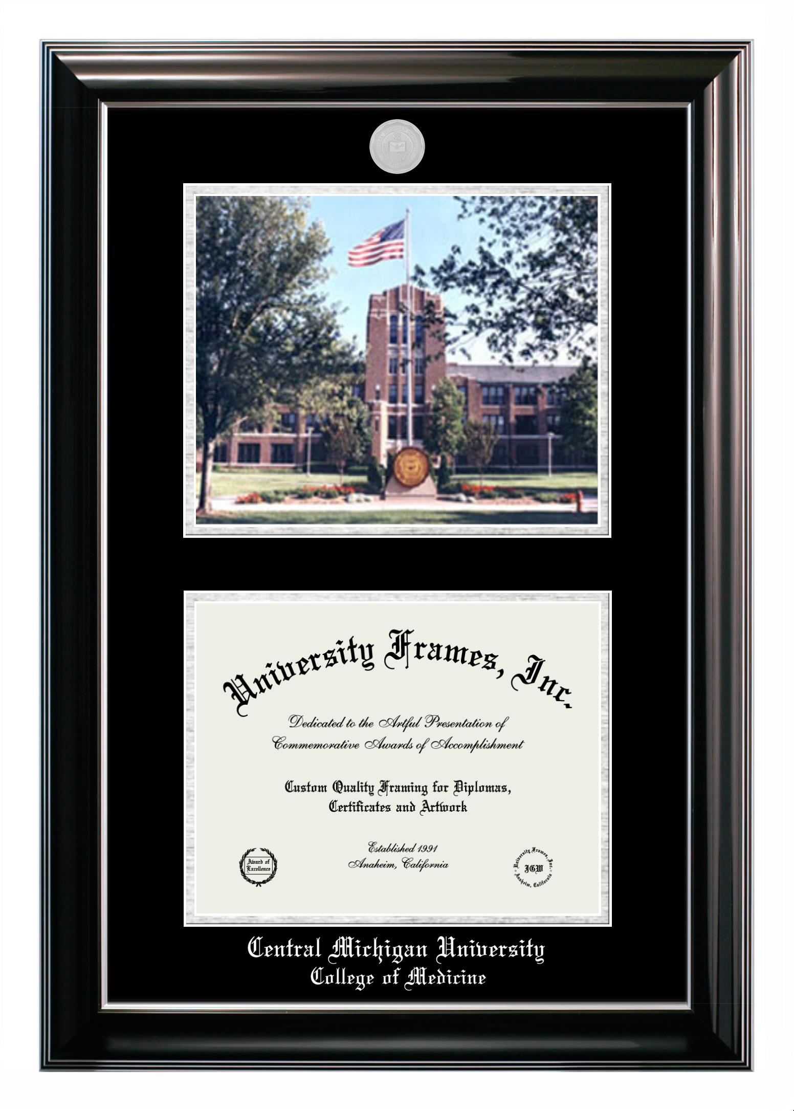 If you are a recent Central Michigan University College of Medicine graduate or an alum looking for a professional diploma frame to show off your accomplishment, look no further. We provide officially licensed custom diploma frames that come with the original Central Michigan University College of Medicine seal. Our handcrafted degree frames make an ideal graduation gift for any Central Michigan University College of Medicine recent graduate or alum. Each diploma frame is carefully crafted and inspected for quality and precision. Our graduation frames can be easily customized according to your taste and preference. Customize your college diploma frame now!