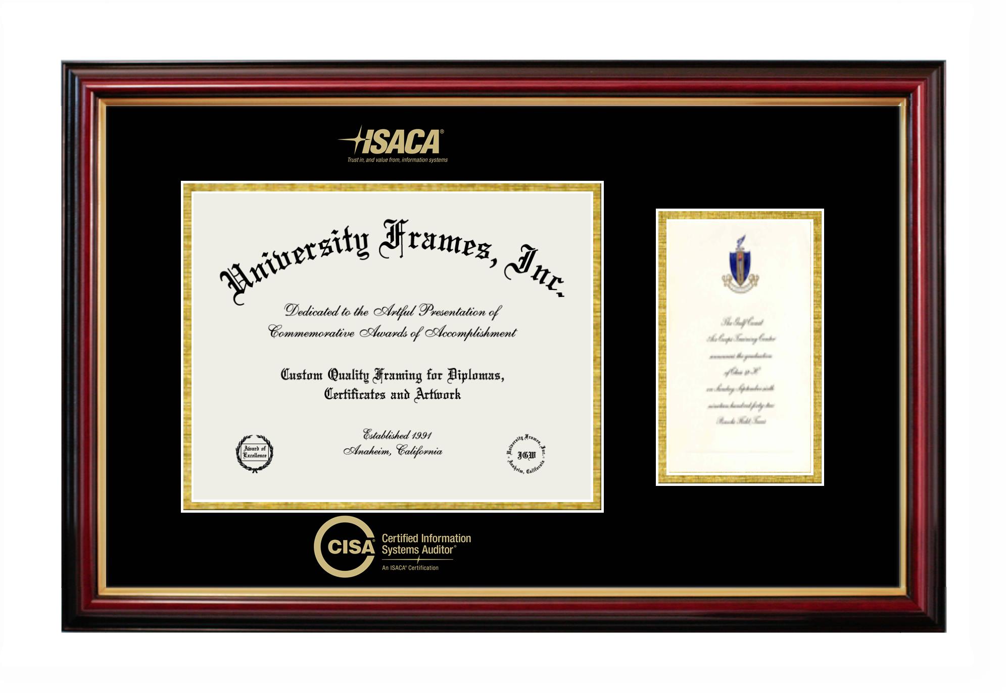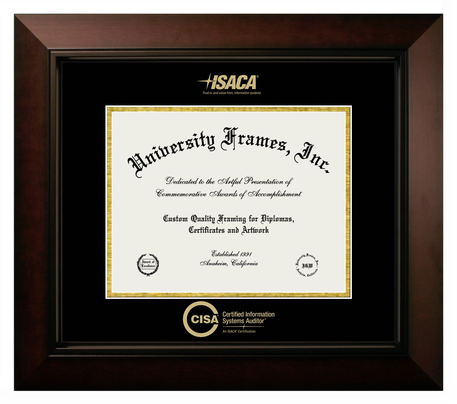 If you are a recent Certified Information Systems Auditor (ISACA) graduate or an alum looking for a professional diploma frame to show off your accomplishment, look no further. We provide officially licensed custom diploma frames that come with the original Certified Information Systems Auditor (ISACA) seal. Our handcrafted degree frames make an ideal graduation gift for any Certified Information Systems Auditor (ISACA) recent graduate or alum. Each diploma frame is carefully crafted and inspected for quality and precision. Our graduation frames can be easily customized according to your taste and preference. Customize your college diploma frame now!