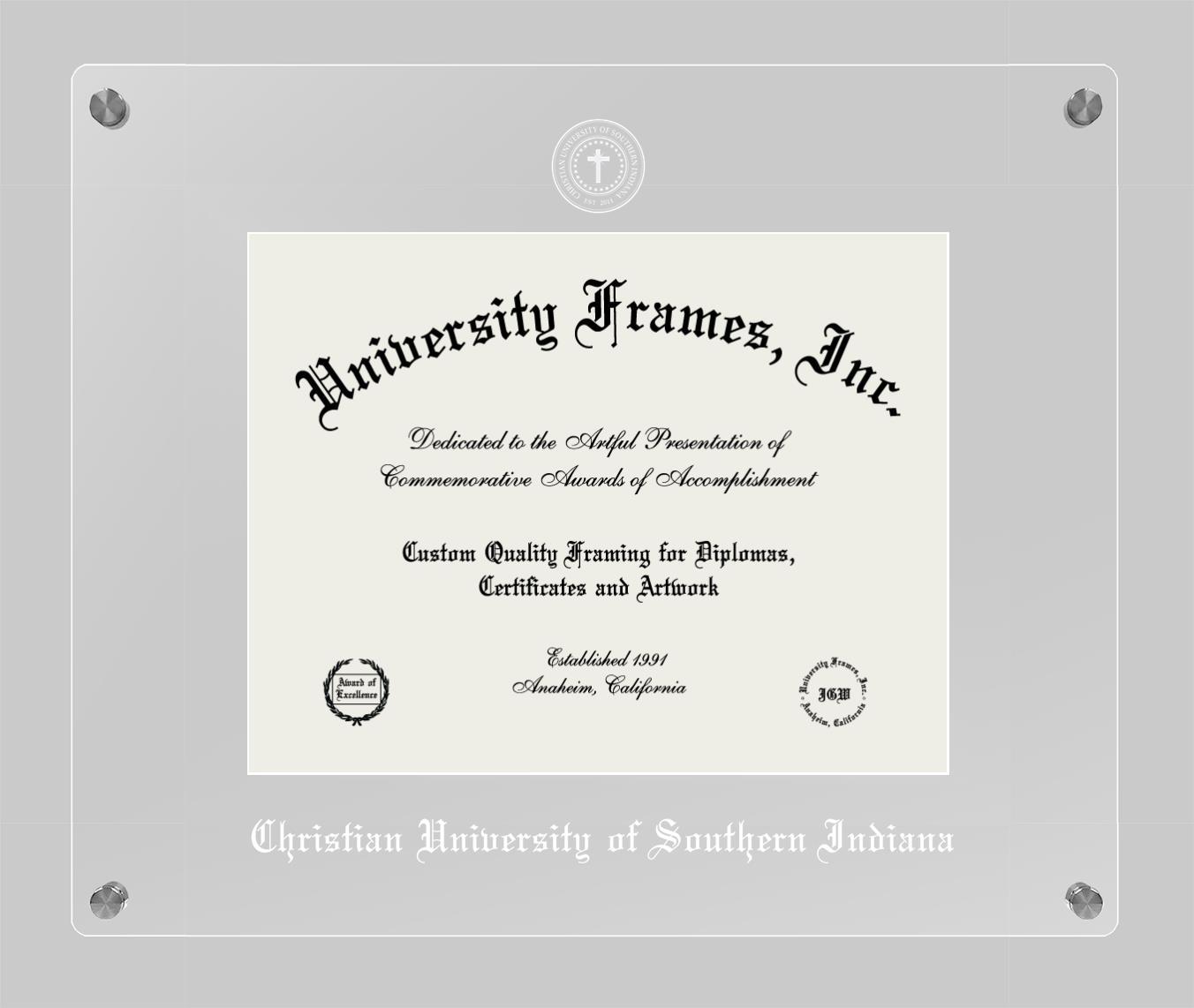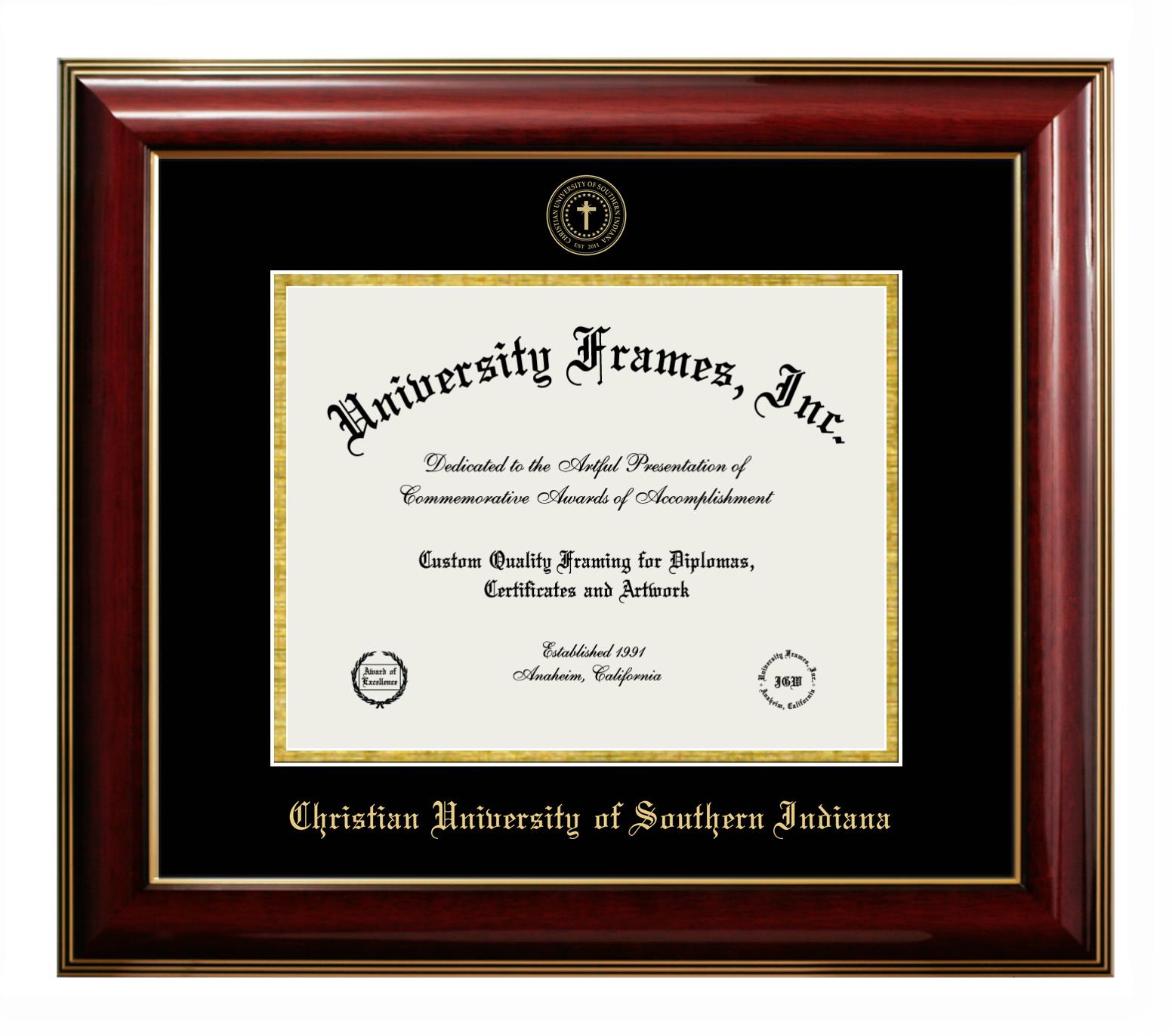 If you are a recent Christian University of Southern Indiana graduate or an alum looking for a professional diploma frame to show off your accomplishment, look no further. We provide officially licensed custom diploma frames that come with the original Christian University of Southern Indiana seal. Our handcrafted degree frames make an ideal graduation gift for any Christian University of Southern Indiana recent graduate or alum. Each diploma frame is carefully crafted and inspected for quality and precision. Our graduation frames can be easily customized according to your taste and preference. Customize your college diploma frame now!