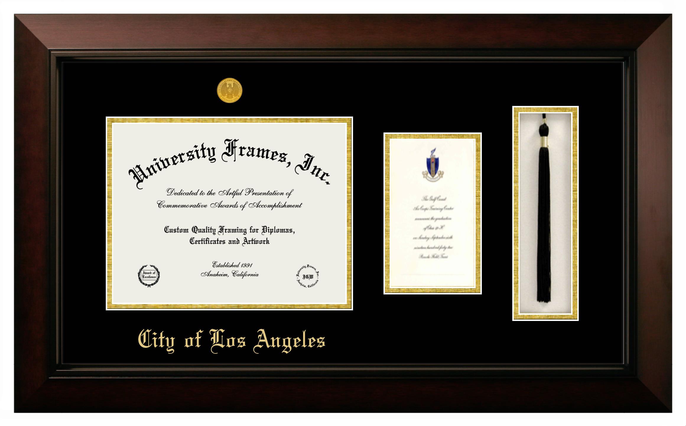 If you are a recent City of Los Angeles graduate or an alum looking for a professional diploma frame to show off your accomplishment, look no further. We provide officially licensed custom diploma frames that come with the original City of Los Angeles seal. Our handcrafted degree frames make an ideal graduation gift for any City of Los Angeles recent graduate or alum. Each diploma frame is carefully crafted and inspected for quality and precision. Our graduation frames can be easily customized according to your taste and preference. Customize your college diploma frame now!