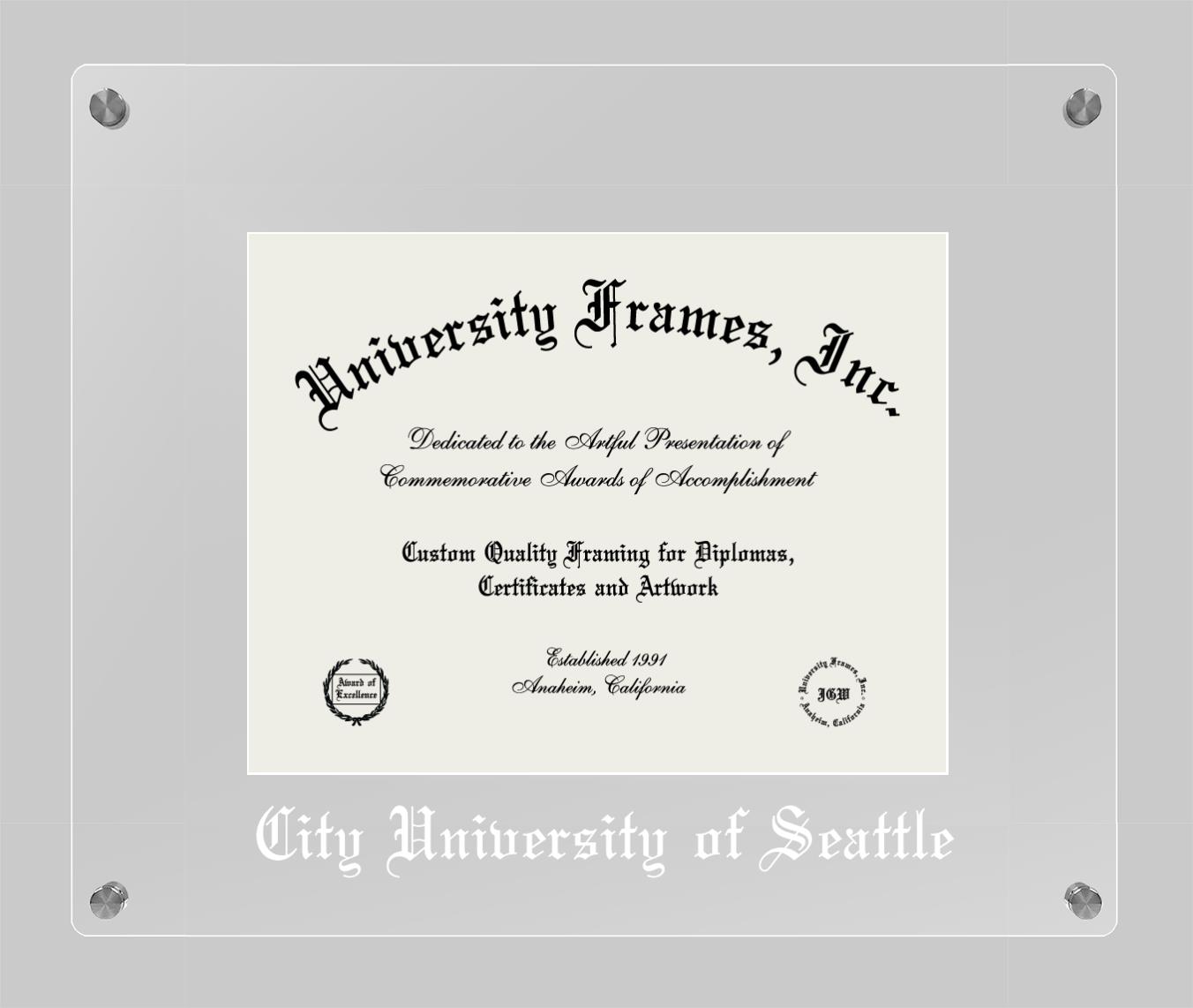 If you are a recent City University of Seattle graduate or an alum looking for a professional diploma frame to show off your accomplishment, look no further. We provide officially licensed custom diploma frames that come with the original City University of Seattle seal. Our handcrafted degree frames make an ideal graduation gift for any City University of Seattle recent graduate or alum. Each diploma frame is carefully crafted and inspected for quality and precision. Our graduation frames can be easily customized according to your taste and preference. Customize your college diploma frame now!