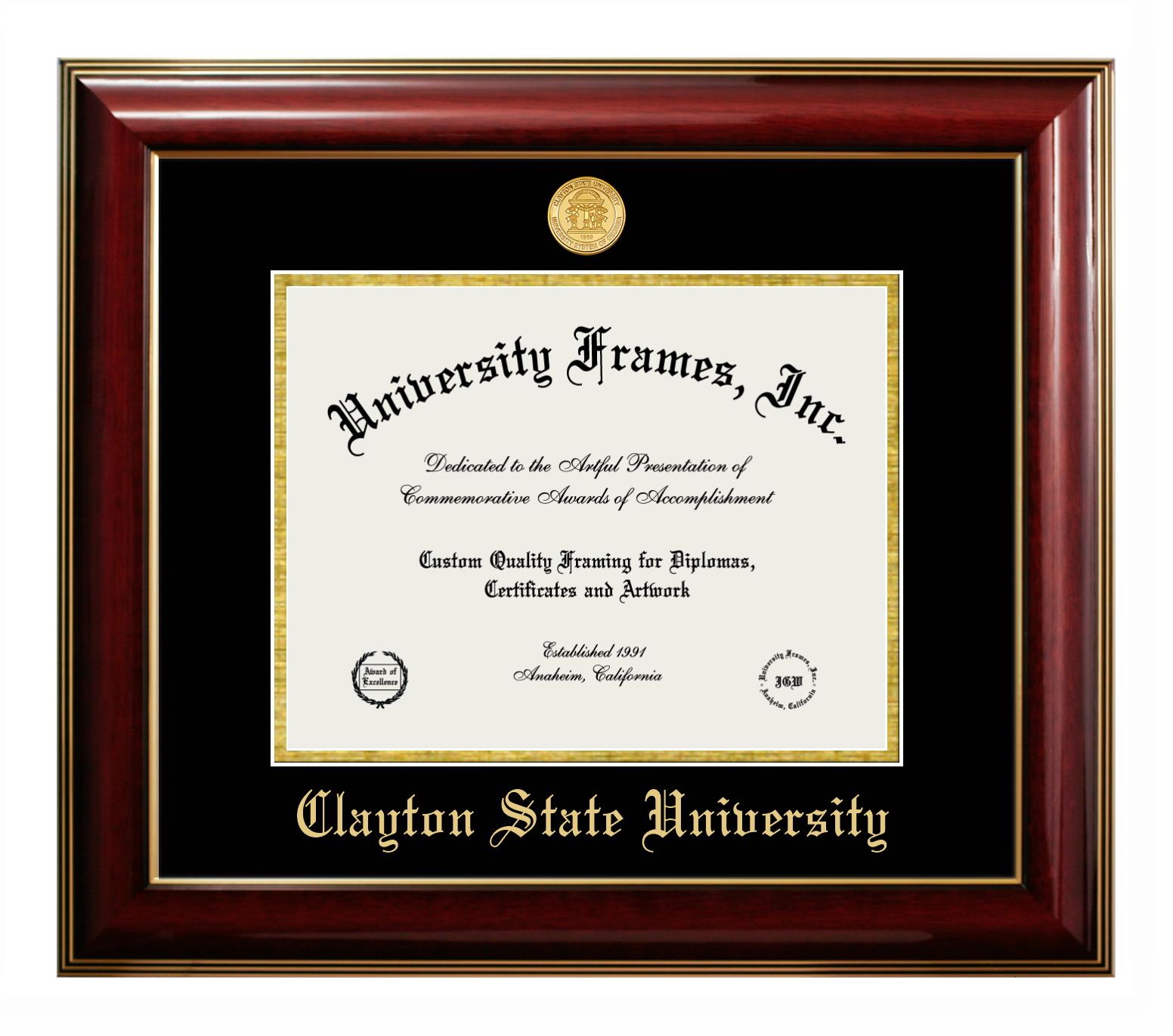 If you are a recent Clayton State University graduate or an alum looking for a professional diploma frame to show off your accomplishment, look no further. We provide officially licensed custom diploma frames that come with the original Clayton State University seal. Our handcrafted degree frames make an ideal graduation gift for any Clayton State University recent graduate or alum. Each diploma frame is carefully crafted and inspected for quality and precision. Our graduation frames can be easily customized according to your taste and preference. Customize your college diploma frame now!