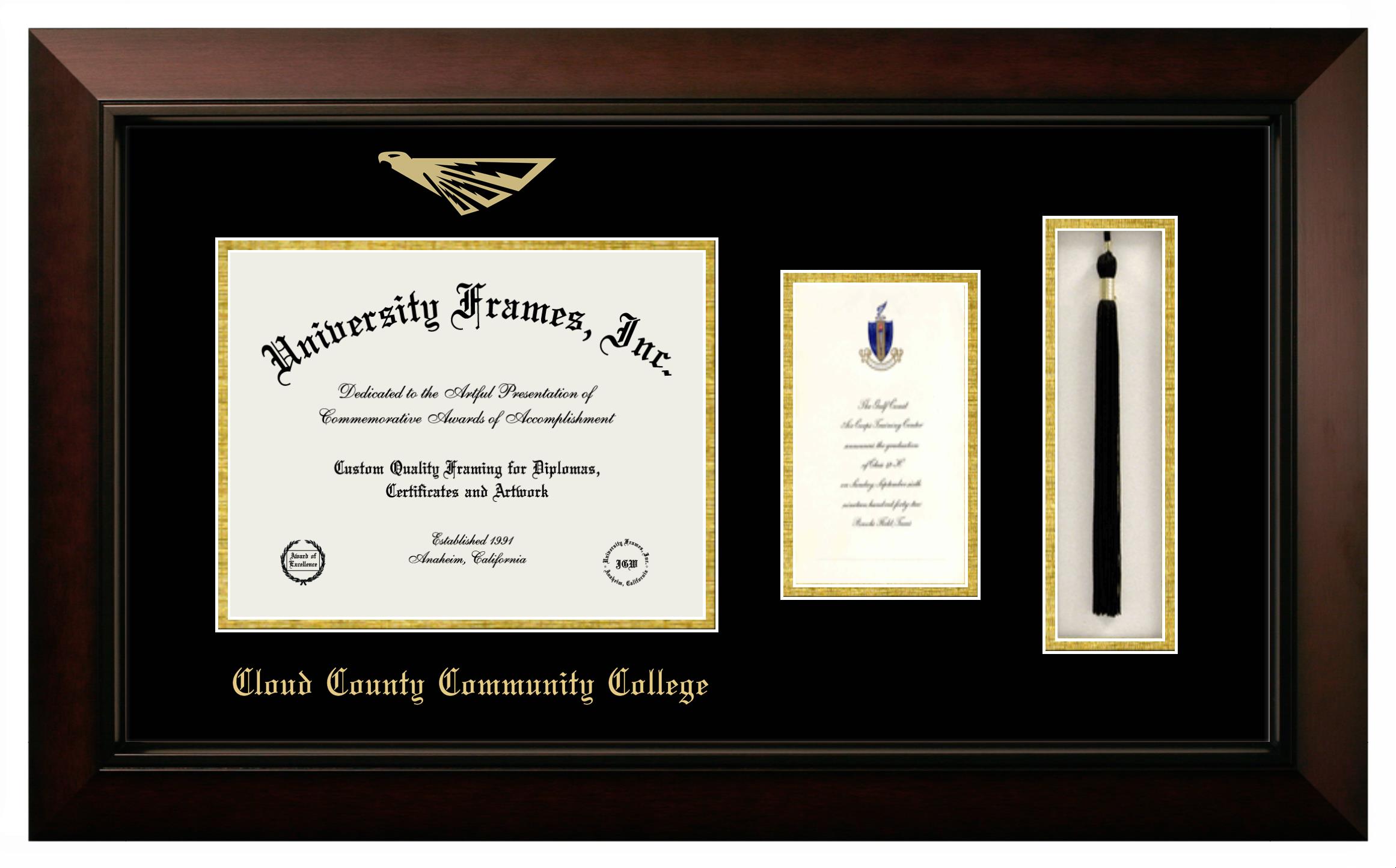 If you are a recent Cloud County Community College graduate or an alum looking for a professional diploma frame to show off your accomplishment, look no further. We provide officially licensed custom diploma frames that come with the original Cloud County Community College seal. Our handcrafted degree frames make an ideal graduation gift for any Cloud County Community College recent graduate or alum. Each diploma frame is carefully crafted and inspected for quality and precision. Our graduation frames can be easily customized according to your taste and preference. Customize your college diploma frame now!