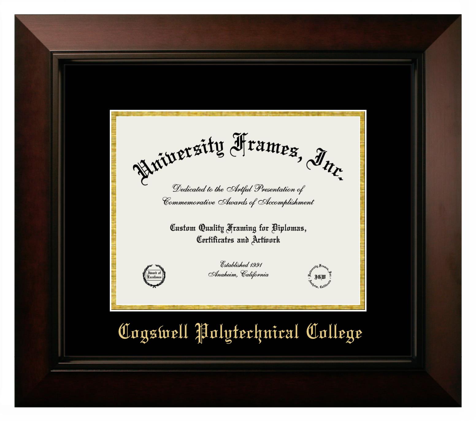 If you are a recent Cogswell Polytechnical College graduate or an alum looking for a professional diploma frame to show off your accomplishment, look no further. We provide officially licensed custom diploma frames that come with the original Cogswell Polytechnical College seal. Our handcrafted degree frames make an ideal graduation gift for any Cogswell Polytechnical College recent graduate or alum. Each diploma frame is carefully crafted and inspected for quality and precision. Our graduation frames can be easily customized according to your taste and preference. Customize your college diploma frame now!