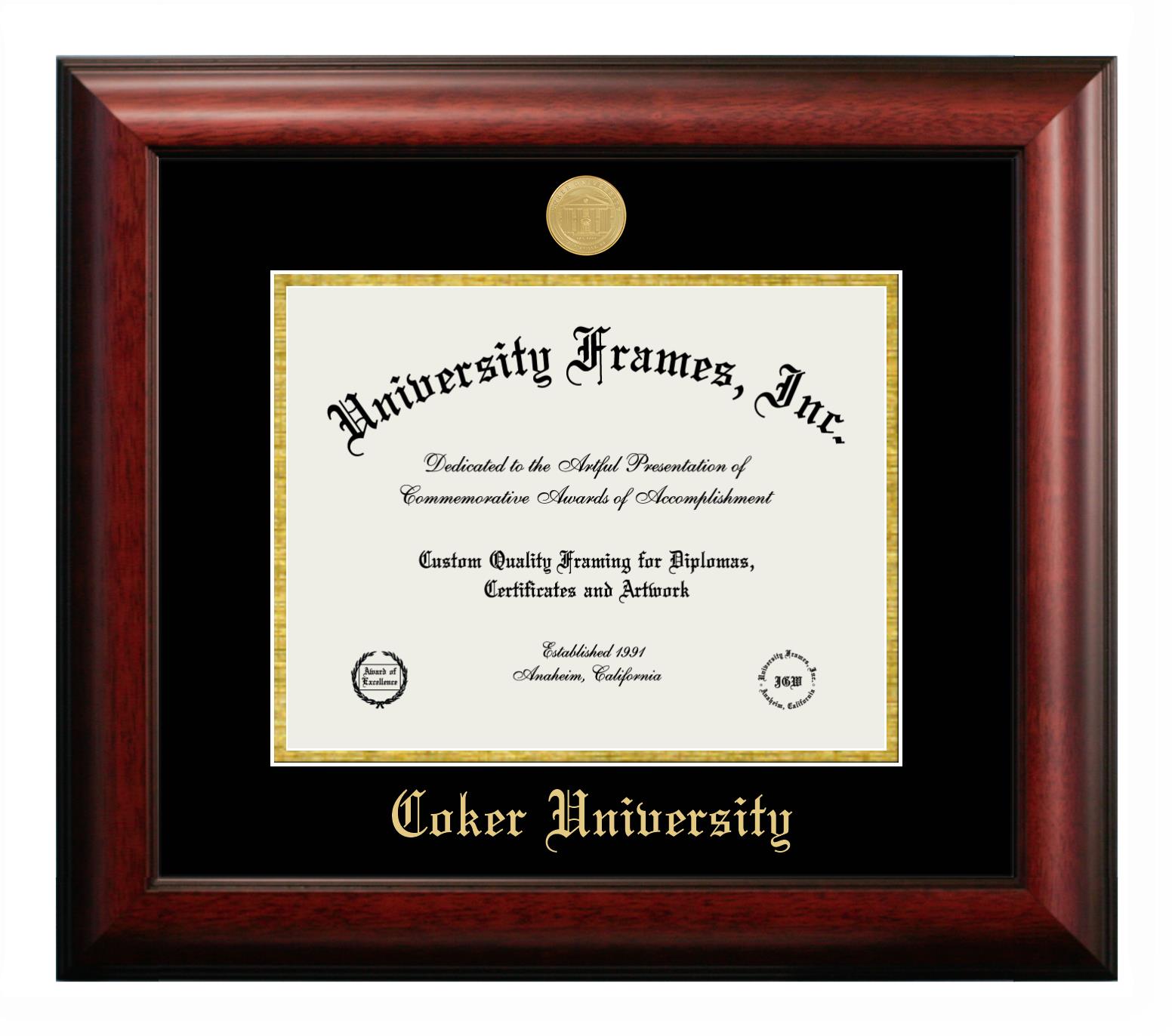 If you are a recent Coker University graduate or an alum looking for a professional diploma frame to show off your accomplishment, look no further. We provide officially licensed custom diploma frames that come with the original Coker University seal. Our handcrafted degree frames make an ideal graduation gift for any Coker University recent graduate or alum. Each diploma frame is carefully crafted and inspected for quality and precision. Our graduation frames can be easily customized according to your taste and preference. Customize your college diploma frame now!