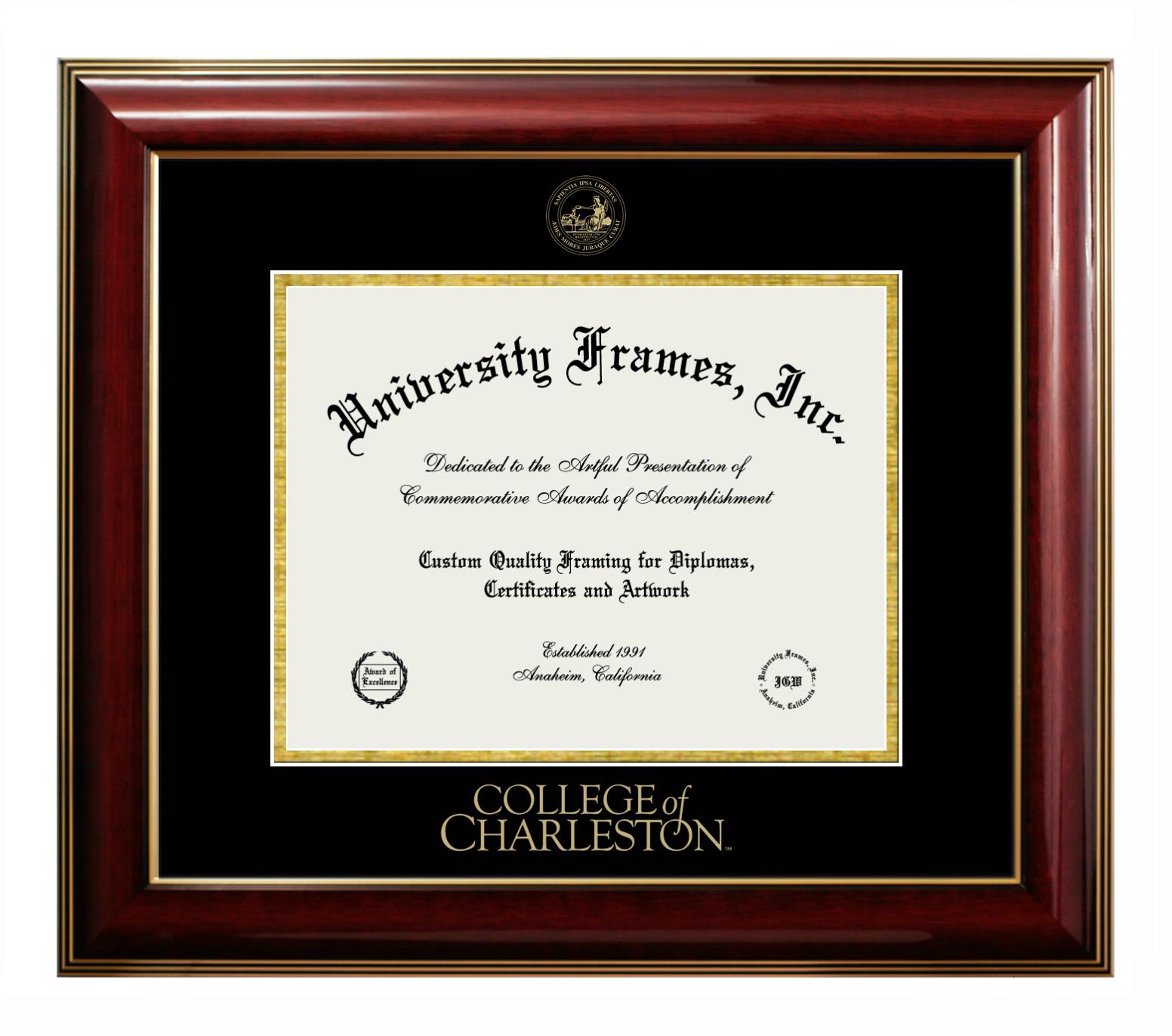 If you are a recent College of Charleston graduate or an alum looking for a professional diploma frame to show off your accomplishment, look no further. We provide officially licensed custom diploma frames that come with the original College of Charleston seal. Our handcrafted degree frames make an ideal graduation gift for any College of Charleston recent graduate or alum. Each diploma frame is carefully crafted and inspected for quality and precision. Our graduation frames can be easily customized according to your taste and preference. Customize your college diploma frame now!