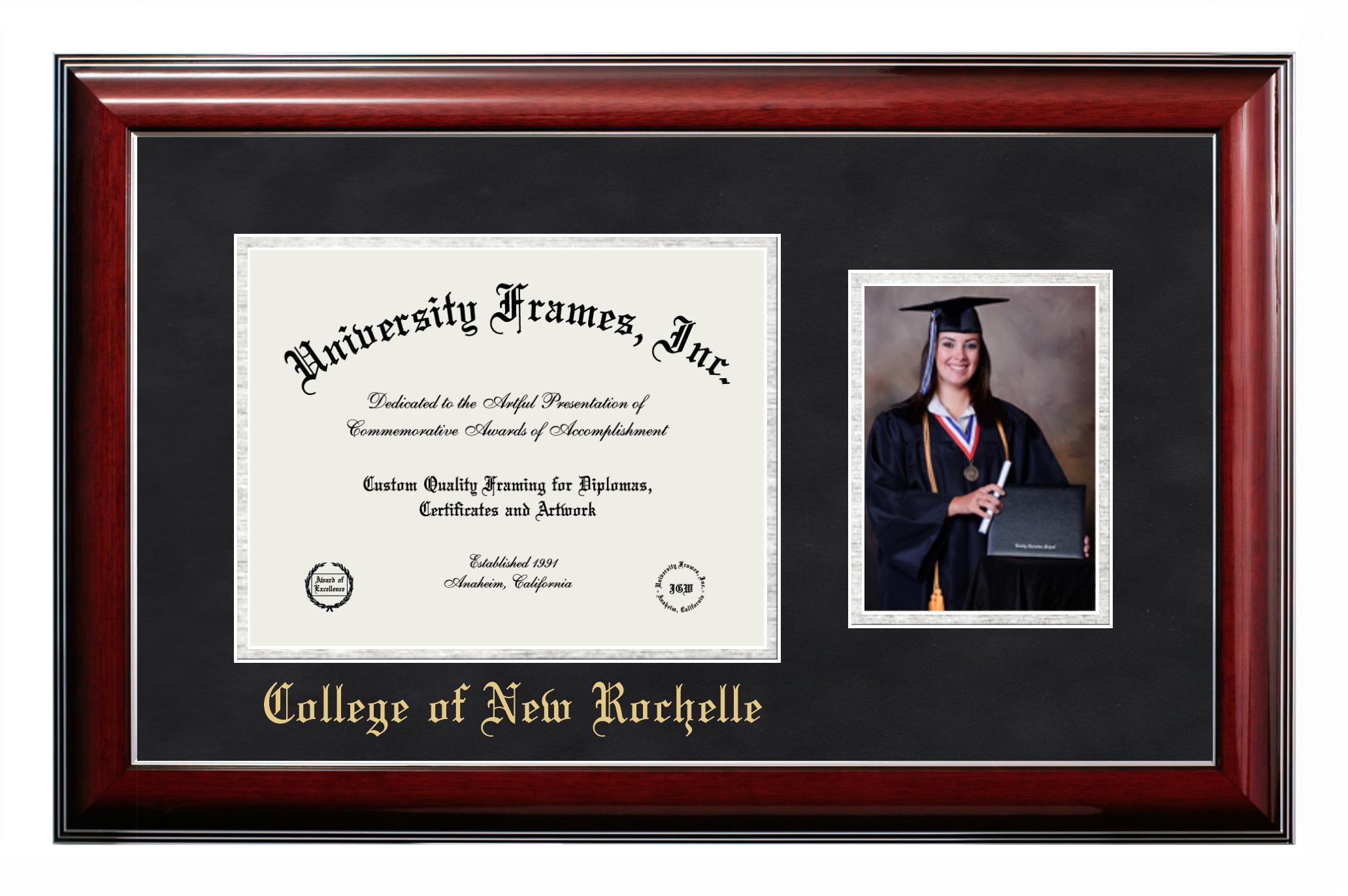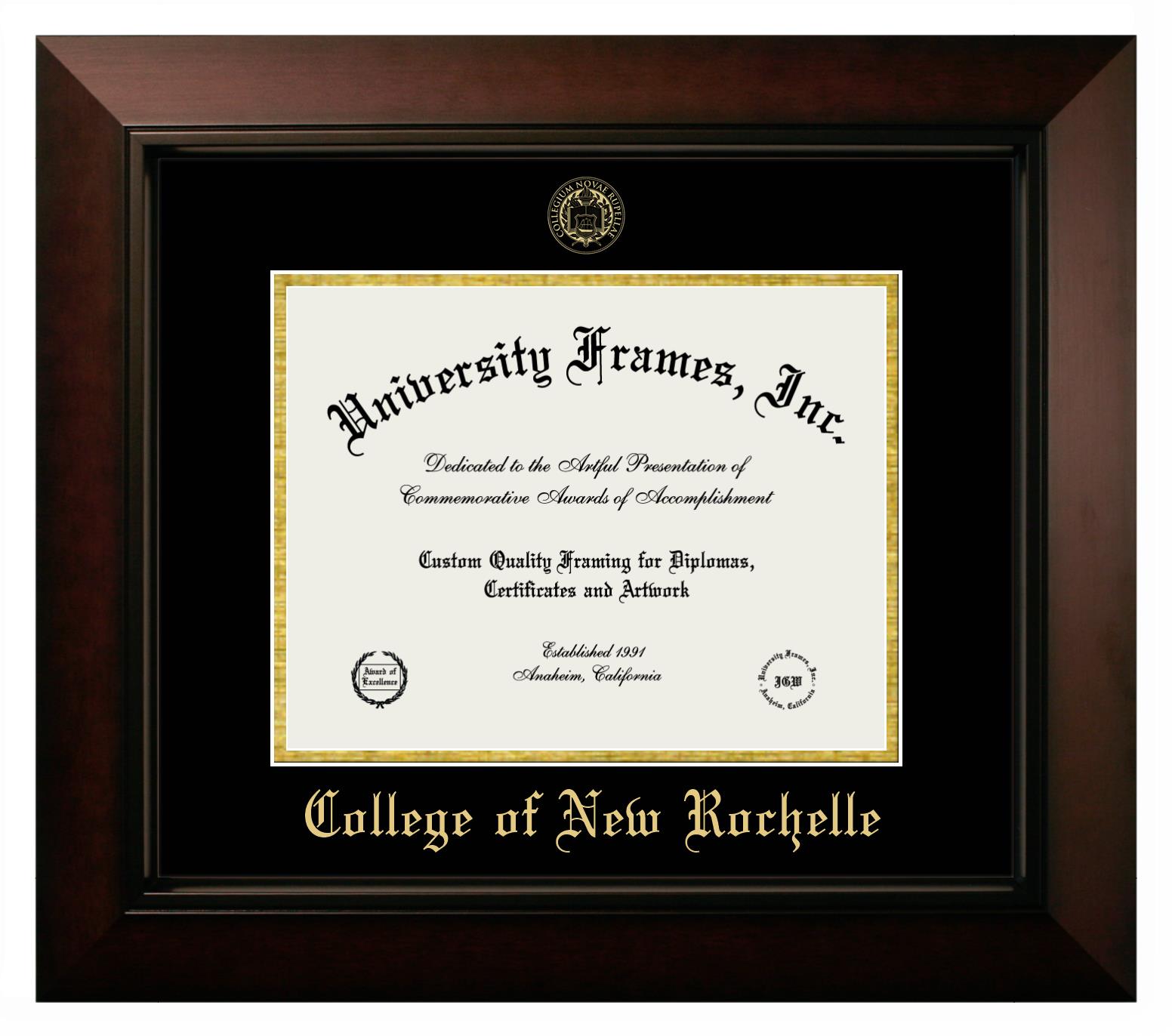 Hey there, College of New Rochelle grads. Congratulations for your accomplishment! Since youโre here, you must be looking for a professional graduation frame to preserve and showcase your College of New Rochelle diploma. Or, you may be looking for a diploma frame for another grad. We at University Frames, create the finest diploma frames and are licensed with College of New Rochelle. Each of our degree frames is handcrafted in the US using the finest hardwood and with an exemplary level of attention to detail. Customize your diploma frame using our easy and intuitive online design tool.