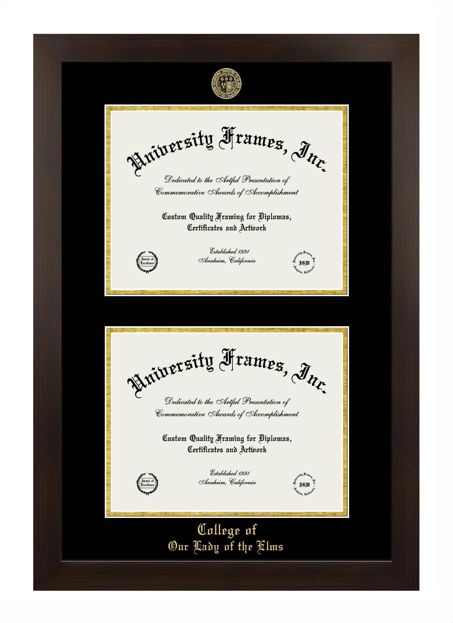 If you are a recent College of Our Lady of the Elms graduate or an alum looking for a professional diploma frame to show off your accomplishment, look no further. We provide officially licensed custom diploma frames that come with the original College of Our Lady of the Elms seal. Our handcrafted degree frames make an ideal graduation gift for any College of Our Lady of the Elms recent graduate or alum. Each diploma frame is carefully crafted and inspected for quality and precision. Our graduation frames can be easily customized according to your taste and preference. Customize your college diploma frame now!